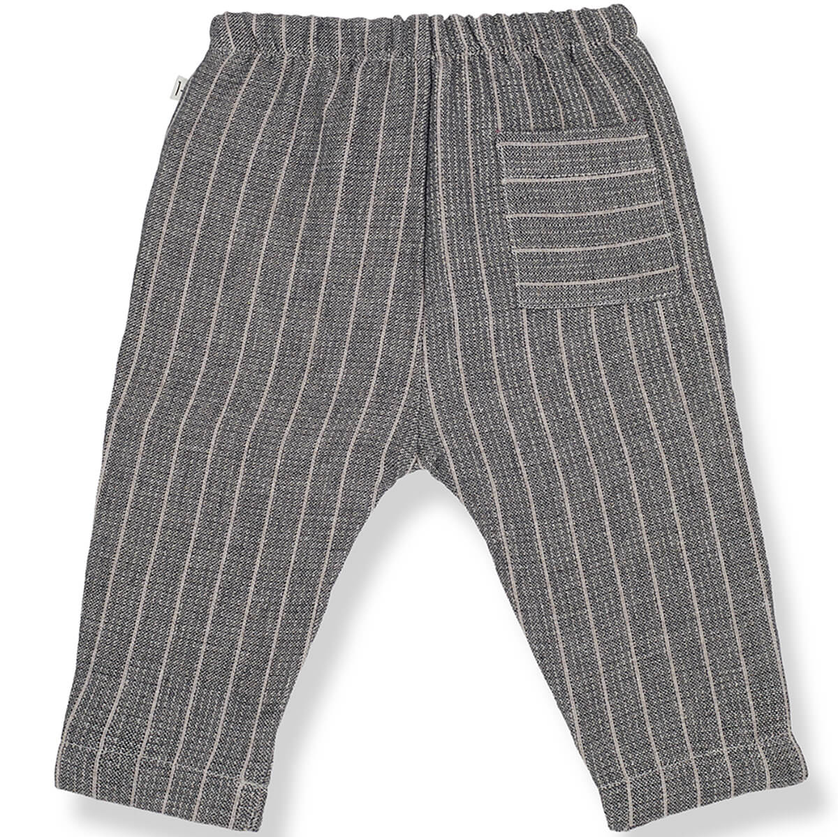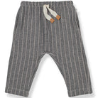 Thomas Pants by 1+ in the Family. Sweet baby pants in a stripe double face fabric. With elasticated drawstring waist, back pocket and roll up ankle cuffs.