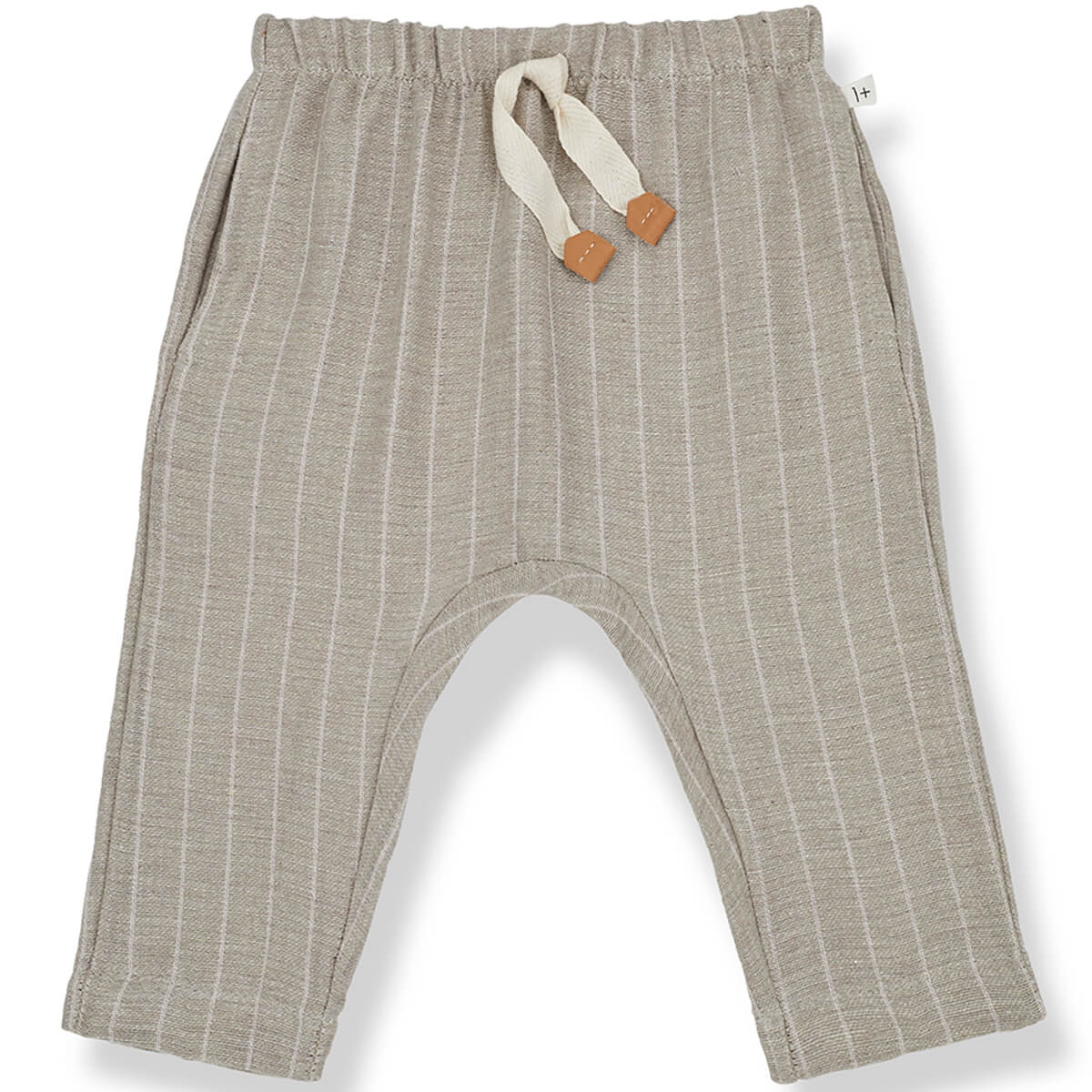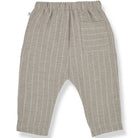 Thomas Pants by 1+ in the Family. Sweet baby pants in a stripe double face fabric. With elasticated drawstring waist, back pocket and roll up ankle cuffs.