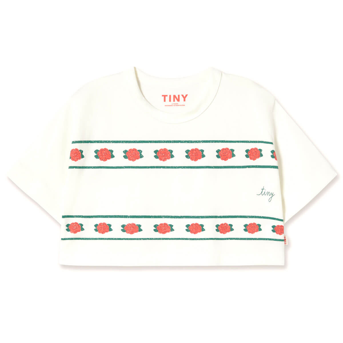 Roses Crop Tee in Off White by Tinycottons