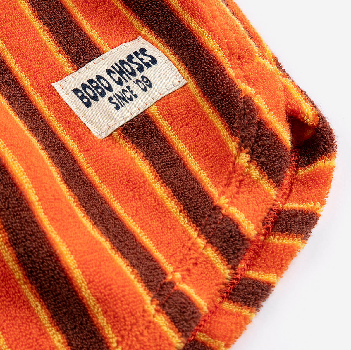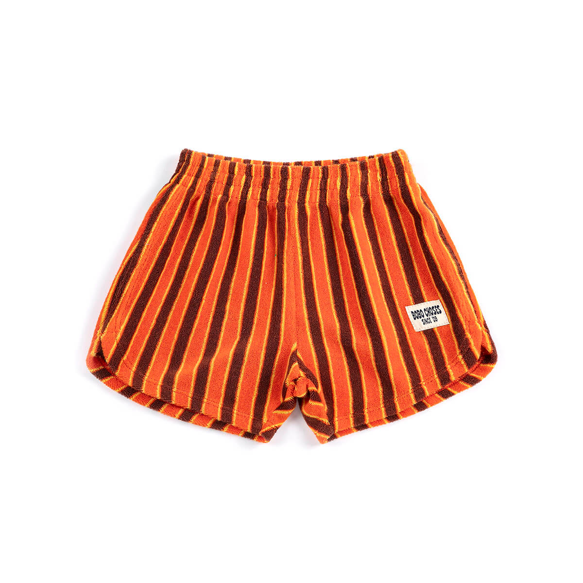 Striped Brick Terry Cloth Shorts by Bobo Choses. Orange shorts designed with an elasticated waistband and a relaxed fit.