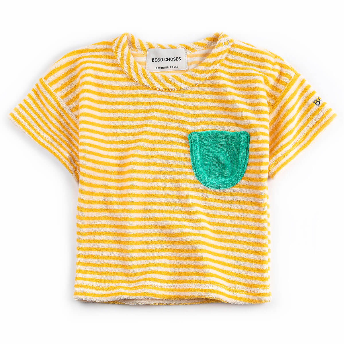 Yellow Stripes Terry Cloth Baby T-Shirt by Bobo Choses