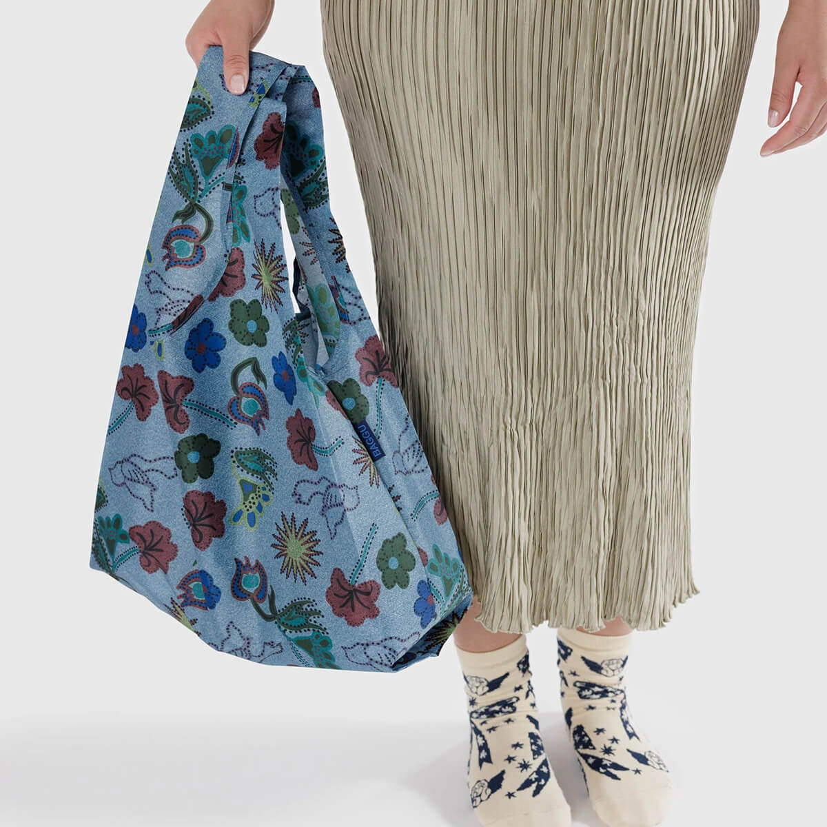 Standard bag by Baggu. Baggu's best selling reusable bag isn't just for the grocery store, it goes everywhere and hauls almost anything. Carries 2-3 plastic grocery bags worth of stuff comfortably in hand or over your shoulder.