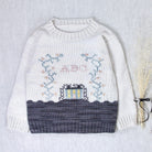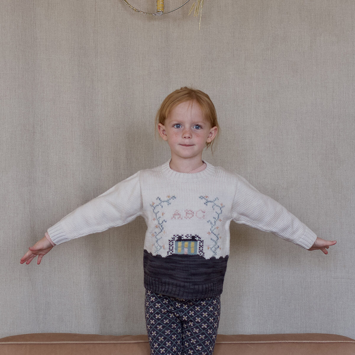 Cross Stitch Pullover by Iver & Isla. A beautiful knit jumper with a cross stitch pattern and ABC lettering.