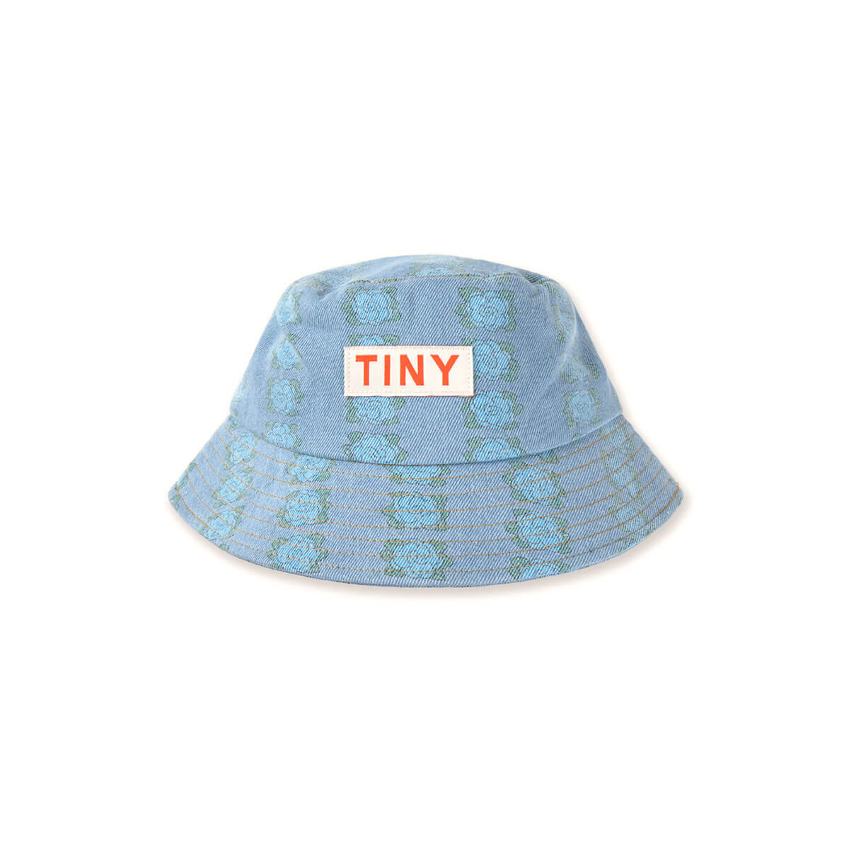 Flowers Bucket Hat by Tinycottons. A timeless style with a fresh twist, this bucket hat, featuring a blue flowers print, is made from durable denim fabric. A small stitched logo label on the front adds the signature Tiny touch. Perfect for sunny days, this hat blends classic style, personality, and everyday functionality.