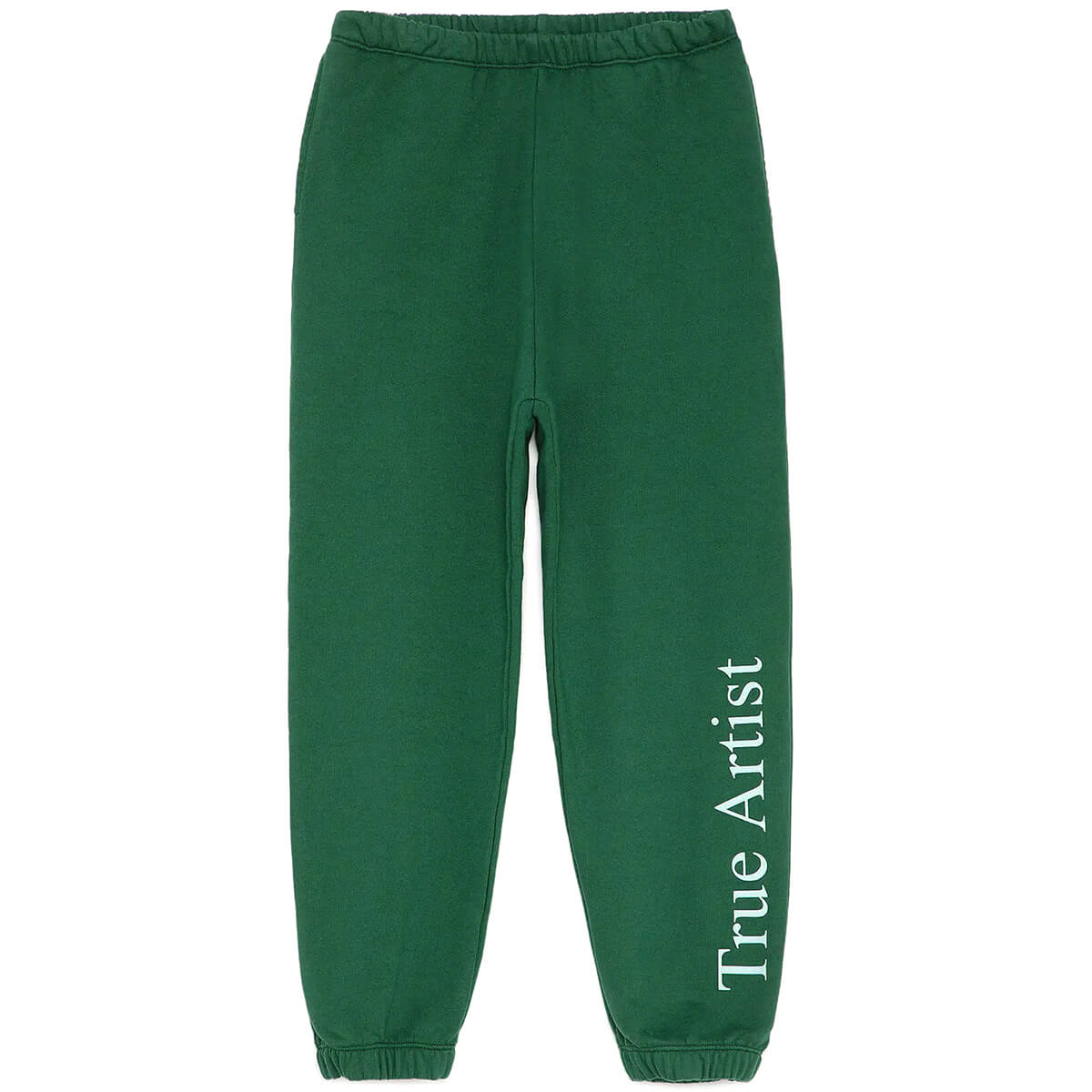 Sweatpants nº05 in Verdant Green by True Artist. Sweatpants nº05 Verdant Green are made of 98% organic cotton and 2% elastane fleece and have the TA logo printed on the leg. They are designed with elastic adjustable waistband, relaxed crotch and slash pockets. They have a relaxed fit.