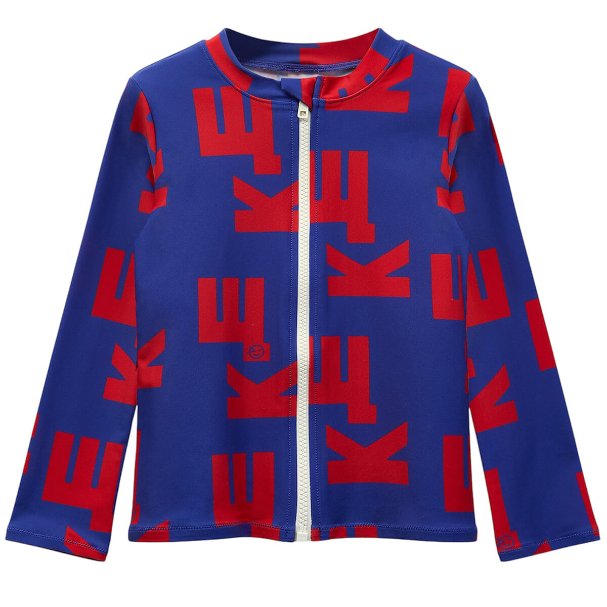 Cloud Rash Vest by Wynken. Stay protected and stylish with this swim rash vest. Designed for comfort and performance, it features long sleeves and a convenient front zip for easy dressing. The bold W.K. allover print adds a playful, standout touch, perfect for fun days at the beach or pool. Crafted from quick-drying, stretchy fabric, this rash vest provides excellent sun protection and freedom of movement for active adventures in the water. A must-have for sun-safe and splash-filled fun..