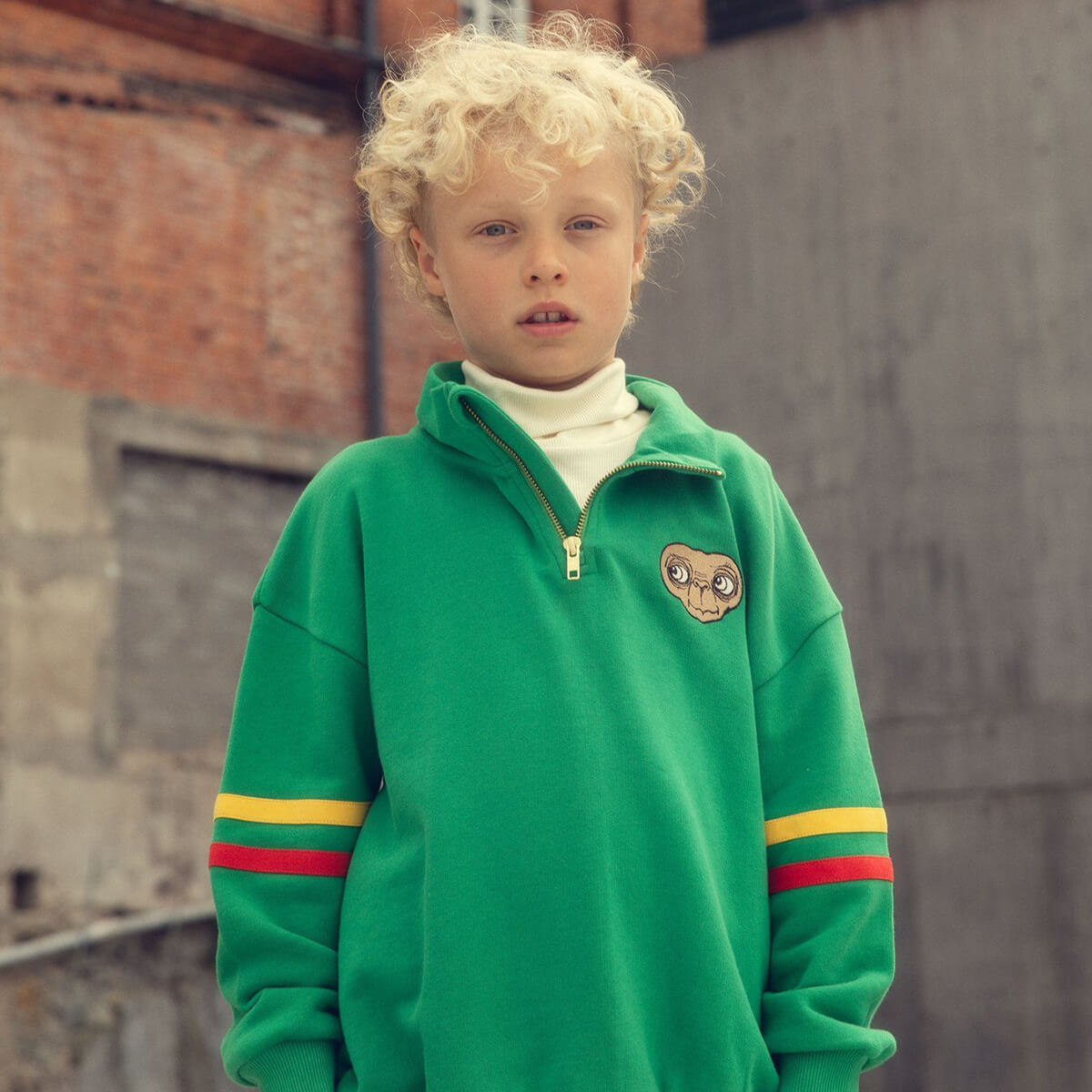 E.T. Embroidered Half Zip Sweatshirt by Mini Rodini. Embroidered half-zip sweatshirt for kids made from 100% GOTS certified organic cotton with E.T. embroidery