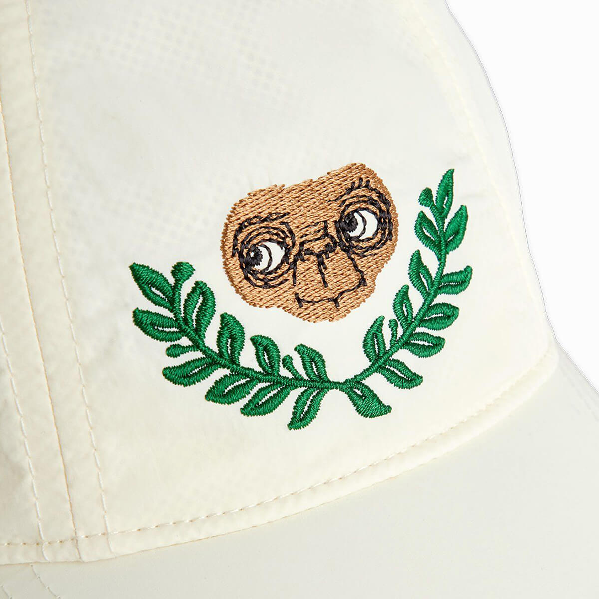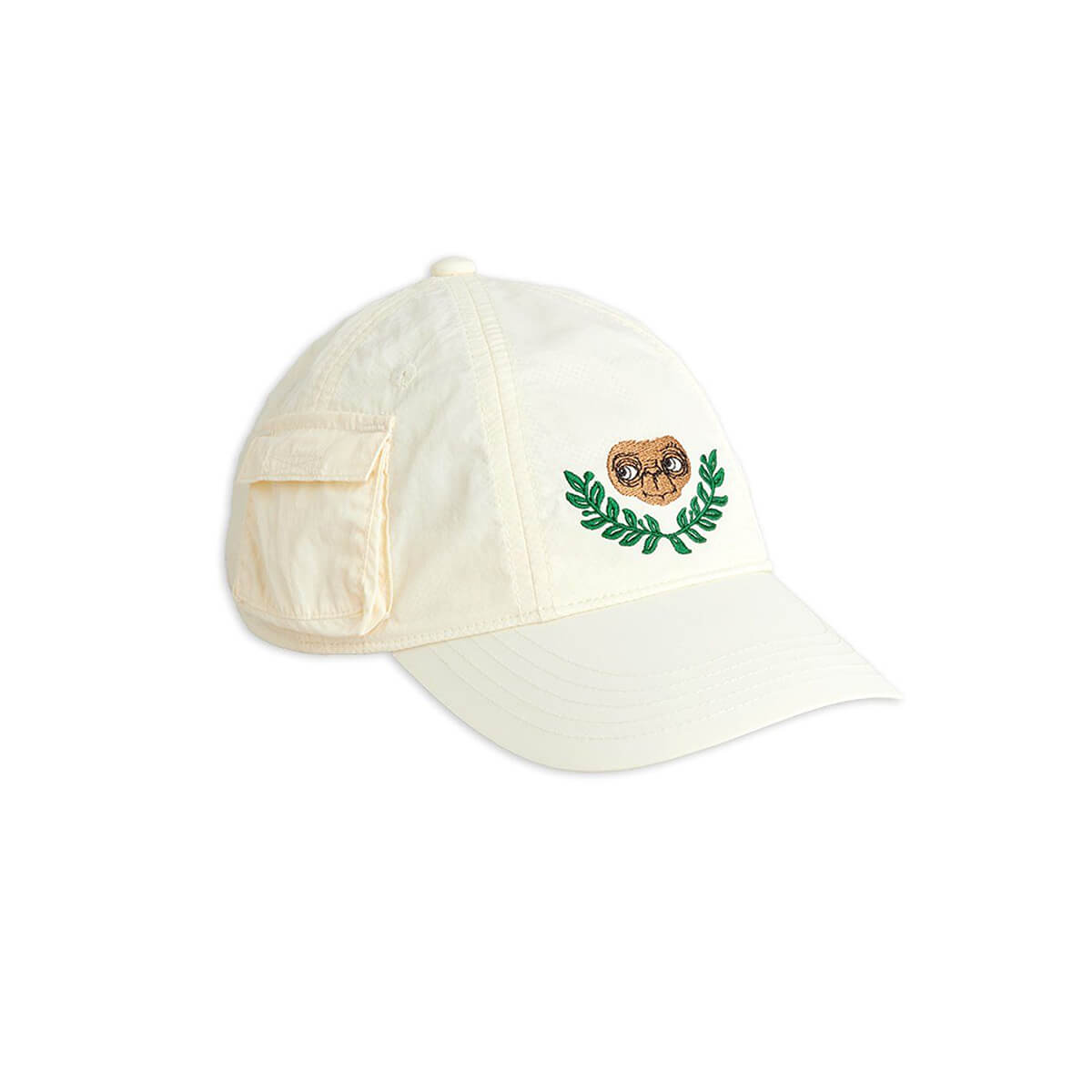 E.T. Embroidered Pocket Cap by Mini Rodini. Cap with E.T. embroidery at front made from 100% recycled nylon. Features a side pocket and adjustable buckle detail.
