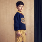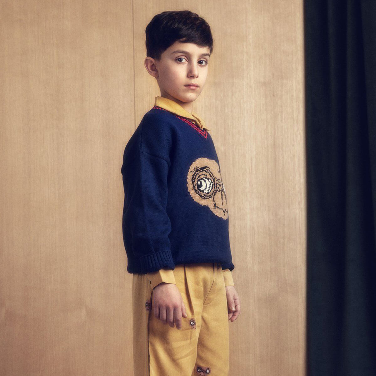 E.T. Intarsia V-Neck Sweater in Blue by Mini Rodini