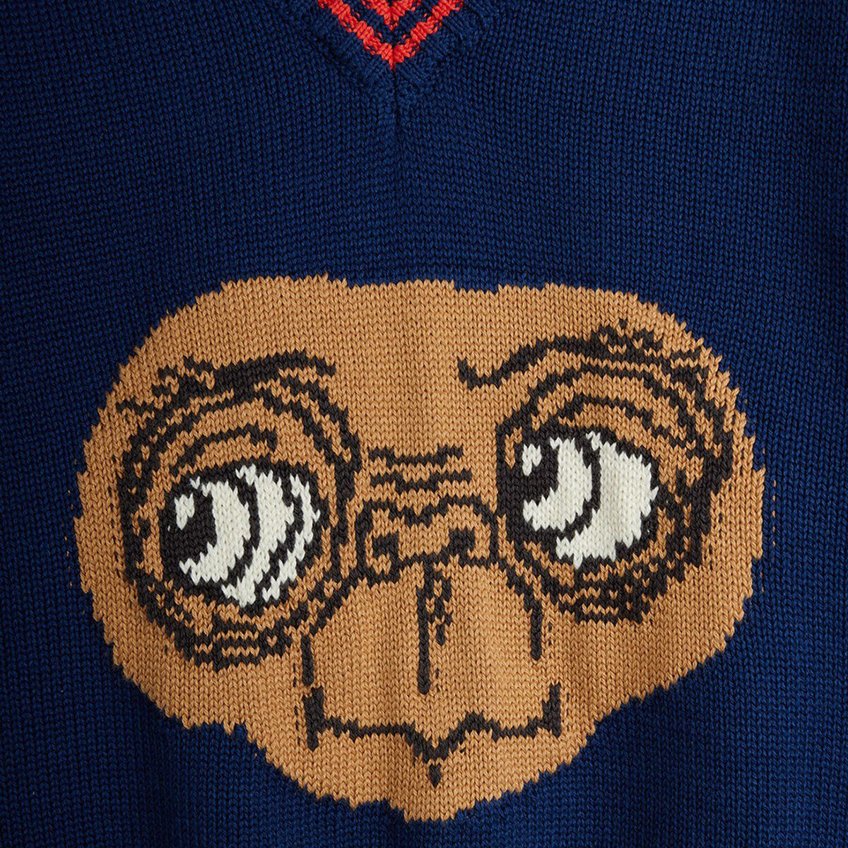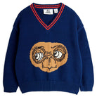 E.T. Intarsia V-Neck Sweater by Mini Rodini. Soft knitted E.T. intarsia sweater in a relaxed fit made from 100% GOTS-certified organic cotton.