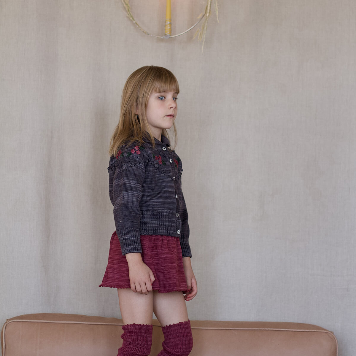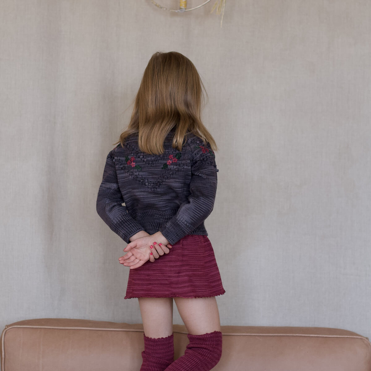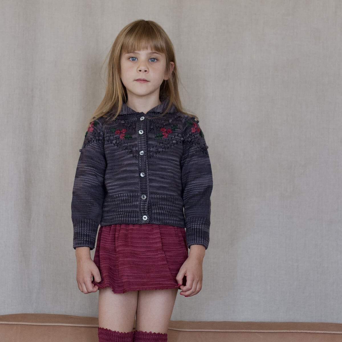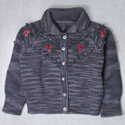 Floral Embroidered Cardigan in Obsidian by Iver & Isla - Last Ones In Stock - 4-8 Years