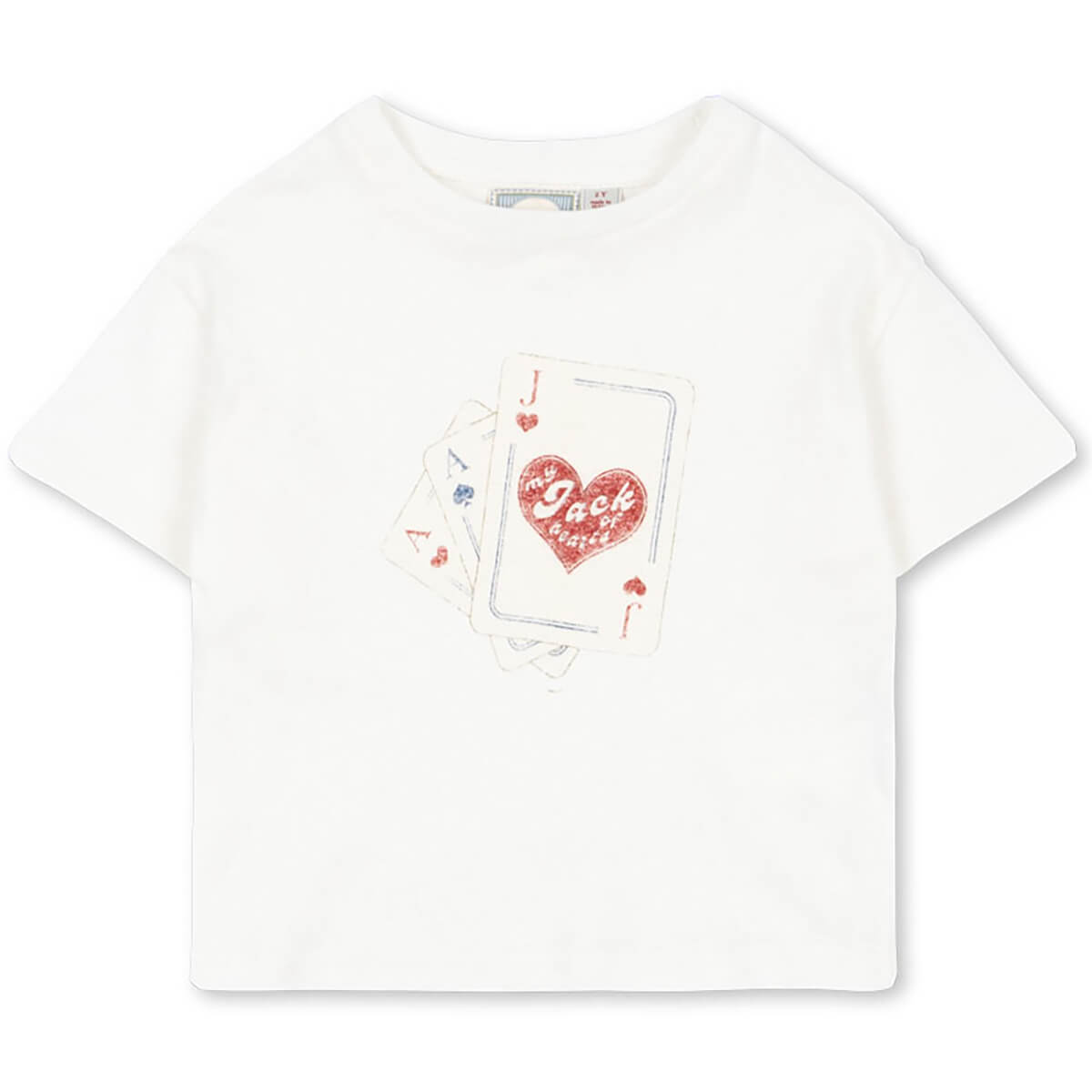 Jack Tee by Rosie Huntington-Whiteley x Konges Sløjd. Game on. The Jack tee is made in a light and breathable linen blend with a soft texture. Designed with dropped shoulders, short sleeves, classic crewneck, and finished with a cute 'Jack of Hearts' print in front dedicated to Rosie's son.