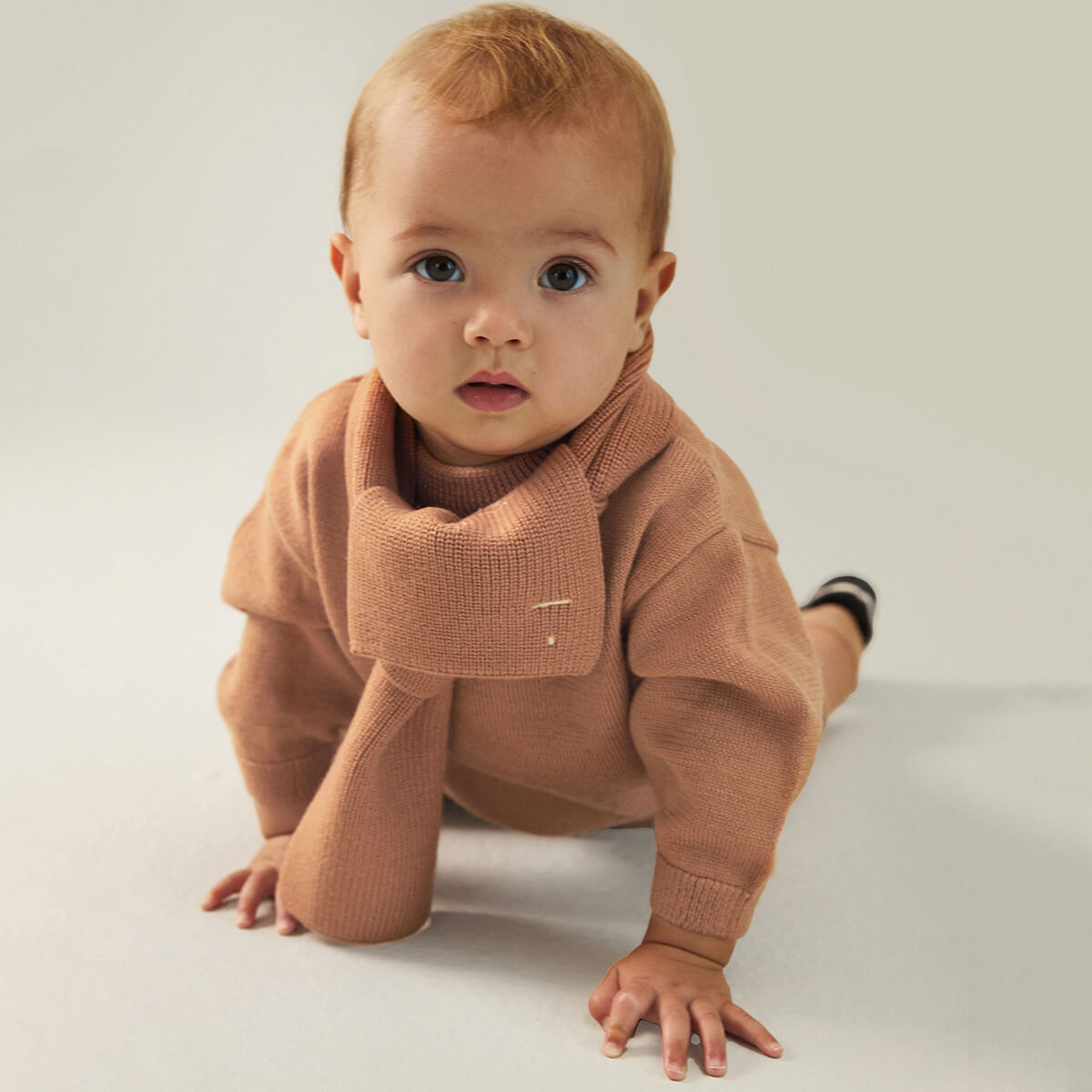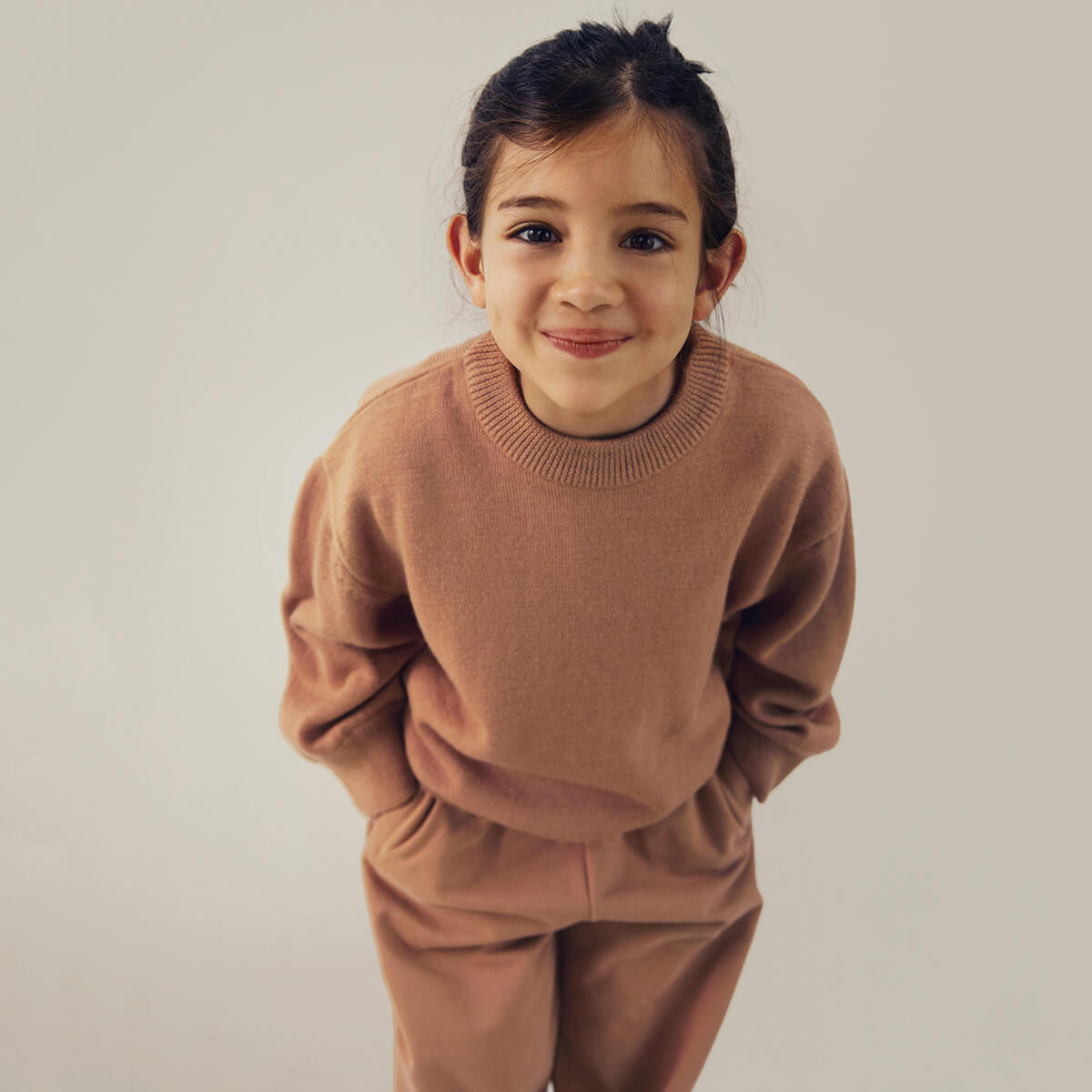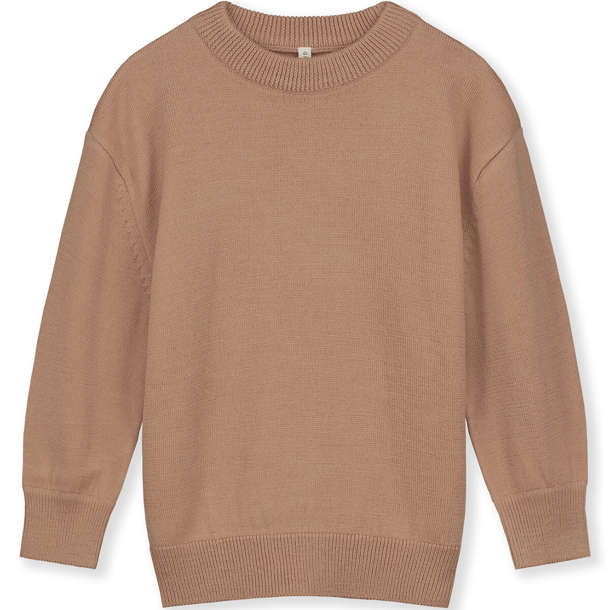 Knitted jumper by Gray Label. A slightly boxy fit jumper made from 100% non-itchy, super soft and RWS certified merino wool. It has ribbed cuffs, bottom and neck. The logo is embroidered on right chest.