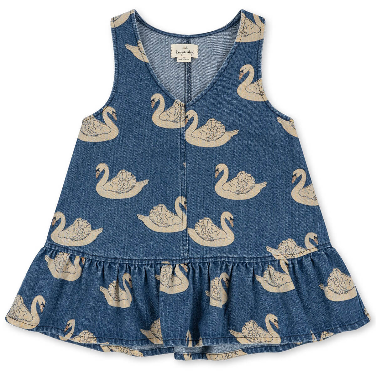 Magot Dress by Konges Sløjd. A sleeveless denim dress with a flared skirt. The perfect layering piece or worn alone.
