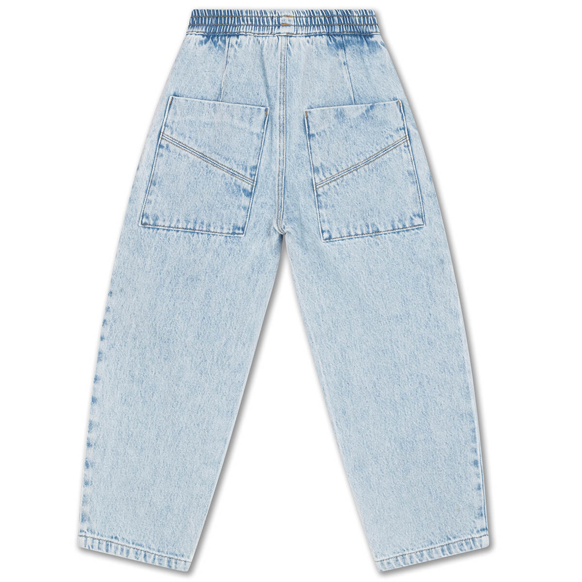 No Sweat Pant by Repose AMS. Cut from soft organic cotton denim, these jogging bottoms in light blue features an elastic waistband for easy movement, side pockets, two back patch pockets and an embroidered logo on the hip. Designed for a relaxed and comfortable fit, these pull-on-and-go jeans are perfect for everyday wear.