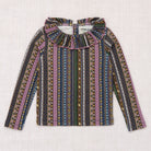 Paloma Top by Misha & Puff. A long-sleeved slim-fit top in soft organic Pima cotton, featuring a gathered ruffle neck with contrast merrowed edge and snap closure at the back neck.