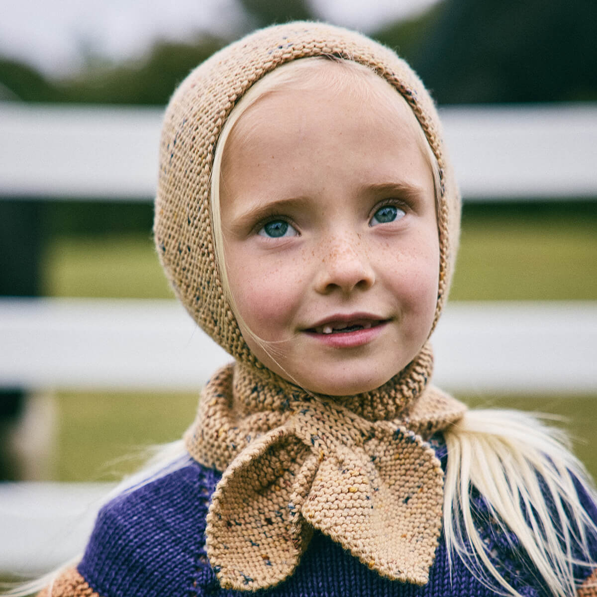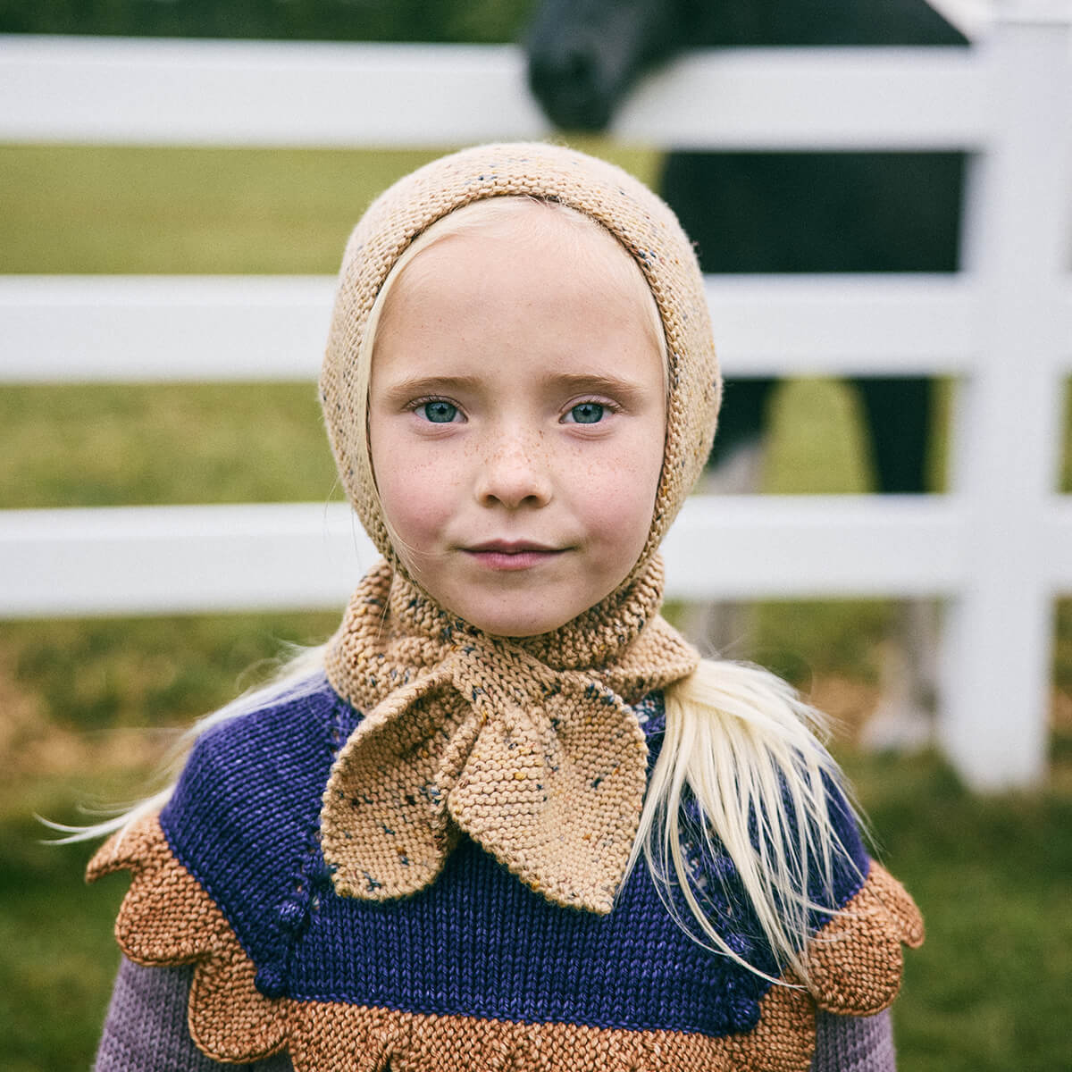 Sledding Hood by Misha & Puff. Misha & Puff's signature hand-knit fitted hood in a heavier-weight Merino wool, with easy pull-through kerchief closure. Keeps heads and necks warm. The perfect complement to any outfit.