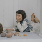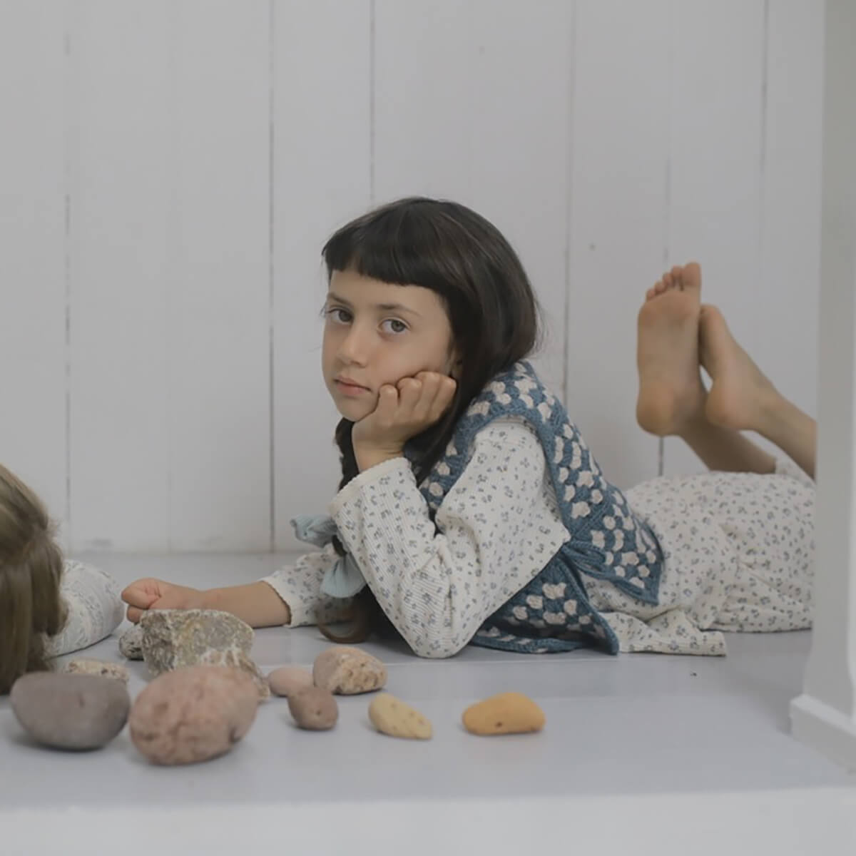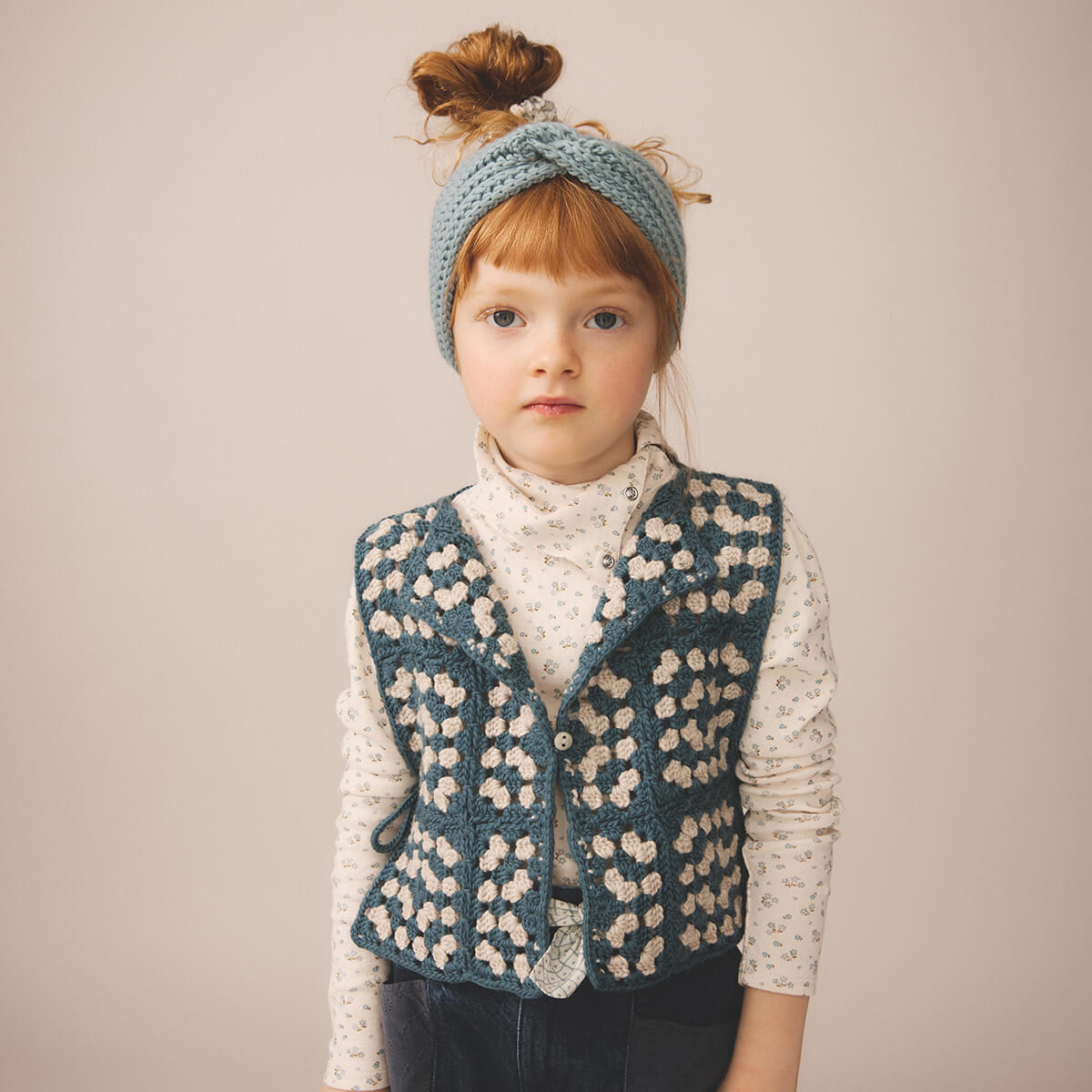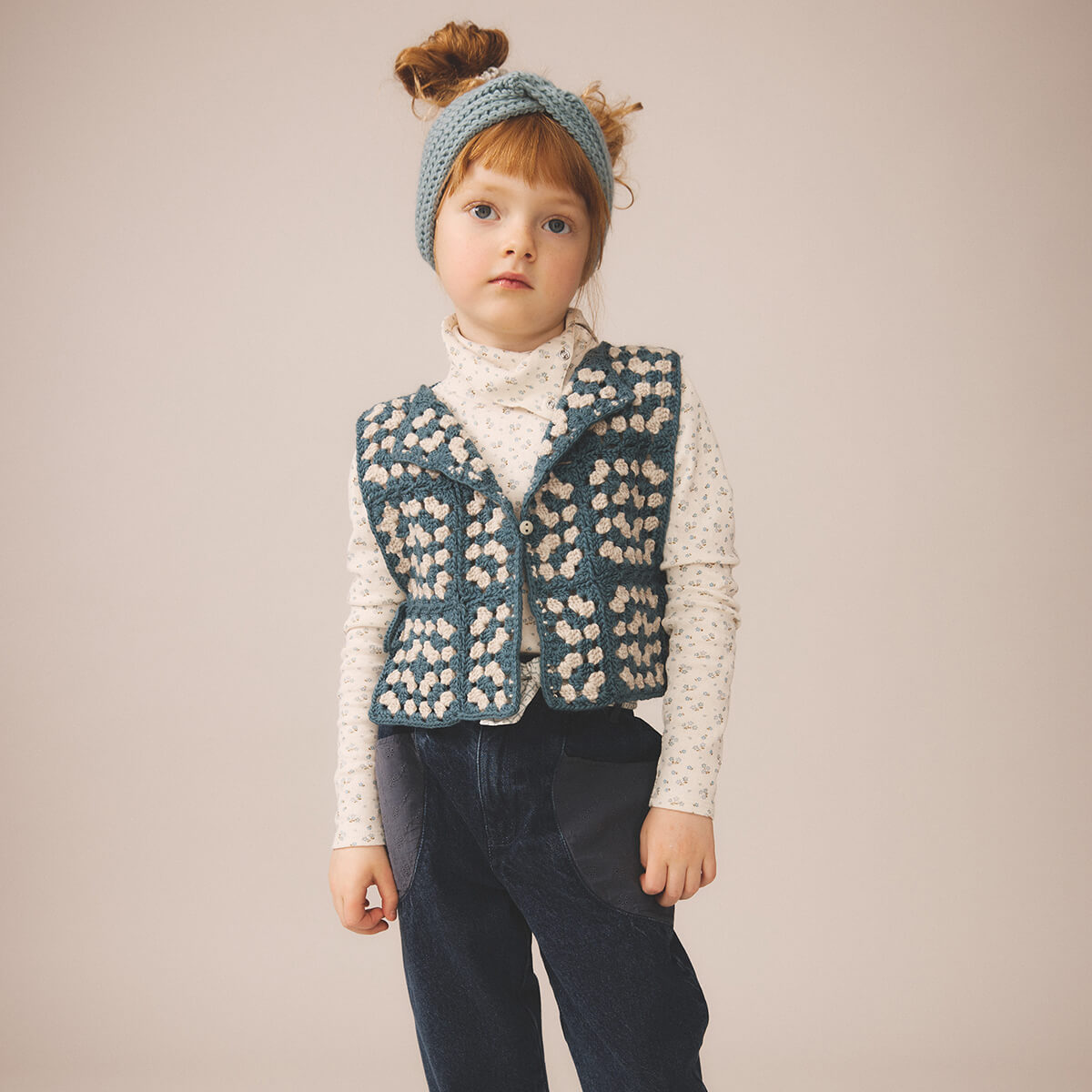 Squares Smock by Soor Ploom. Hand crochet granny square smock with open neck and single horn button closure at front. Ties at sides.