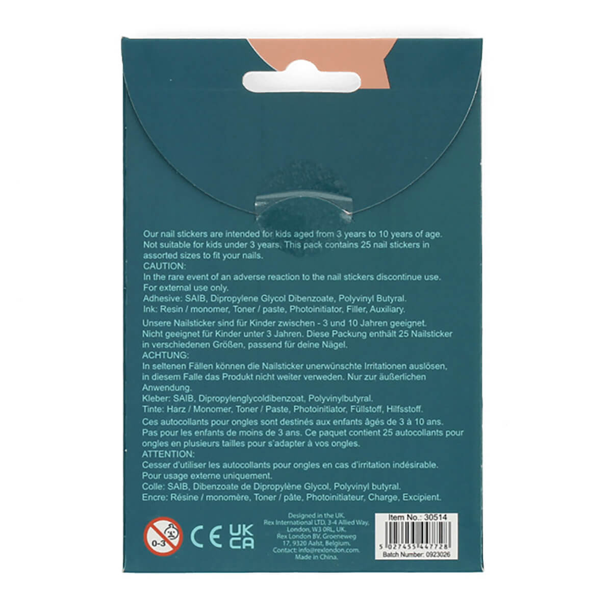 Children's Nail Stickers by Rex London. Let your little ones express their style with these easy-to-apply nail stickers, featuring ladybirds, butterflies, bumblebees and flowers. The pack includes five sets of stickers designed to fit a child's fingernails, so they last longer and there’s more fun for everyone.