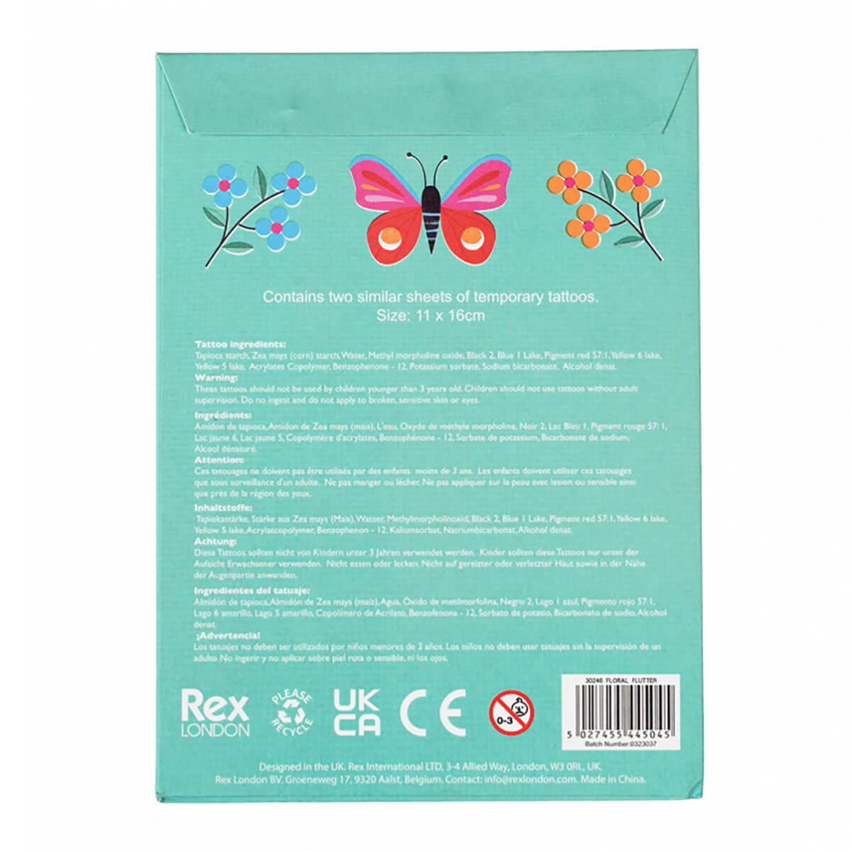 Temporary Tattoos by Rex London. These pretty Floral Flutter temporary tattoos are a festival must-have! Featuring butterflies and flowers, they are also a perfect filler for stockings and party bags. A temporary tattoo station is also loads of fun at children's parties. Easy to apply: just add water. Assorted sizes and images.