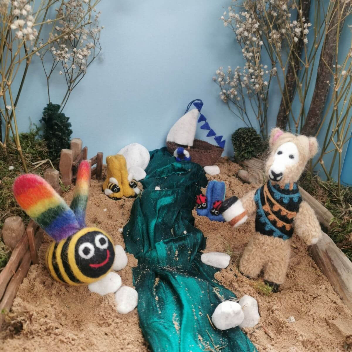 Rainbow bee hanging decoration by Felt So Good. Hand needle felted hanging decoration perfect for decorating all year round.