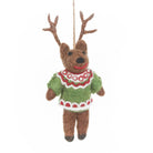 Retro Reindeer hanging Christmas decoration by Felt So Good. Embrace the magic of Christmas past and present with the Retro Reindeer. This adorable felted fellow is guaranteed to take you on a nostalgic journey to the yesteryears of Christmas celebrations in his adorable vintage Christmas jumper. Handcrafted using traditional needle felting techniques from sustainable and eco-friendly materials.
