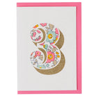 Age 3 Greetings Card in Betsy Pink Liberty Print by The Charming Press. Third birthday card featuring a beautiful glittery number print. Made with a biodegradable glitter. Celebrate those special childhood birthdays in style with this gorgeous, eco-friendly card!