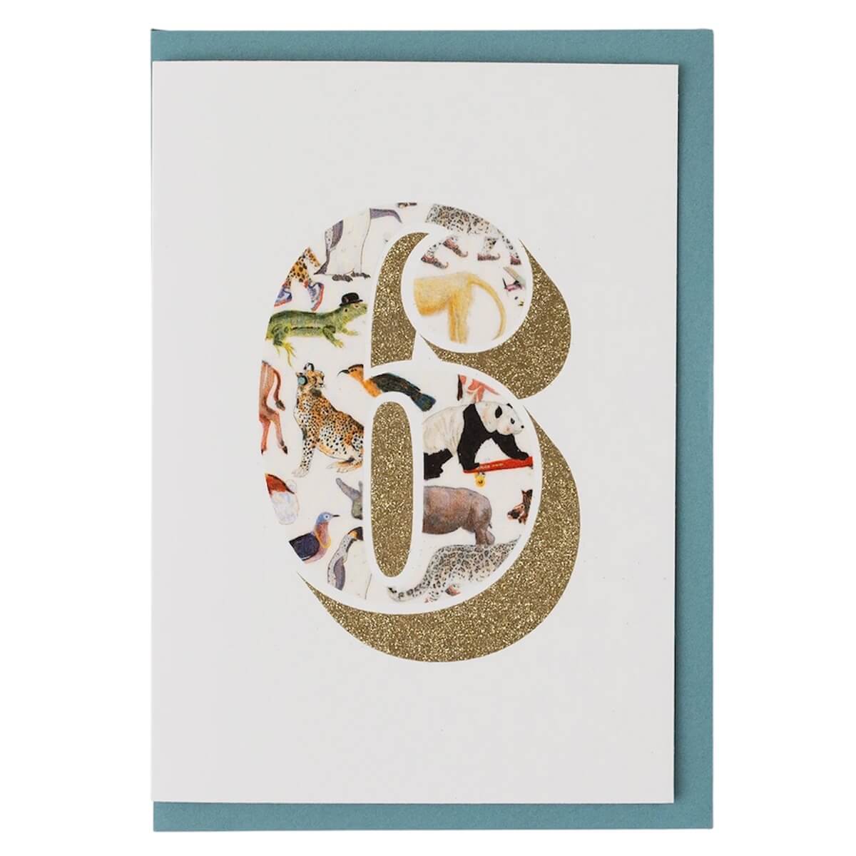 Age 6 Greetings Card in Queue For The Zoo Liberty Print by The Charming Press. Sixth birthday card featuring a beautiful glittery number print. Made with a biodegradable glitter. Celebrate those special childhood birthdays in style with this gorgeous, eco-friendly card!