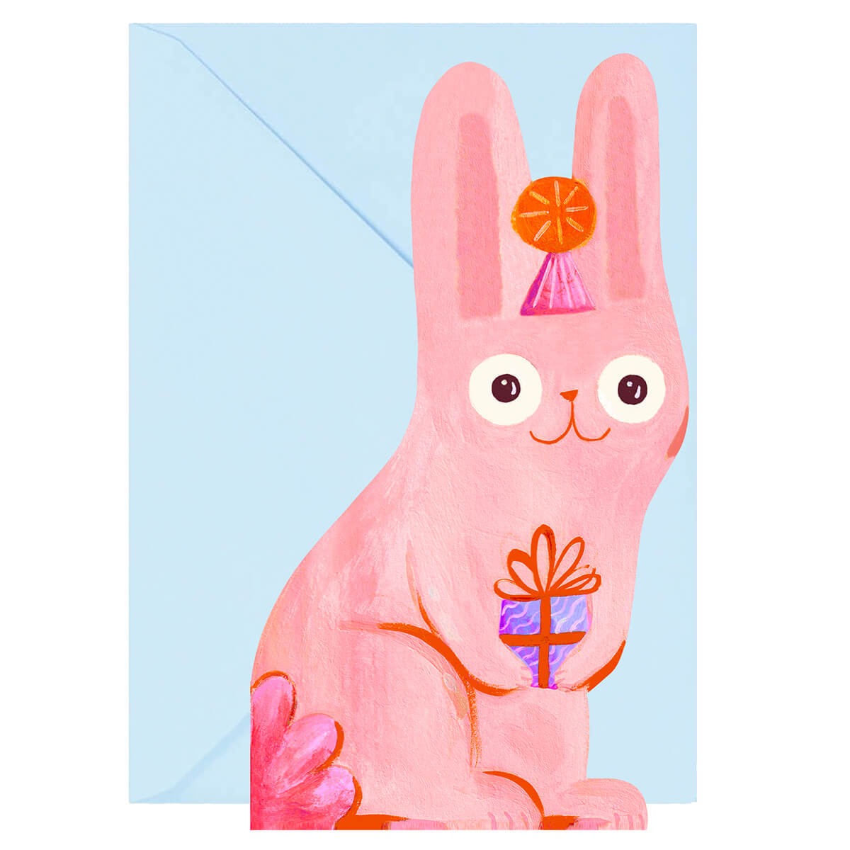 Birthday bunny greetings card by Ickaprint. Die cut greetings card. Exclusive Ickaprint design. Blank inside.