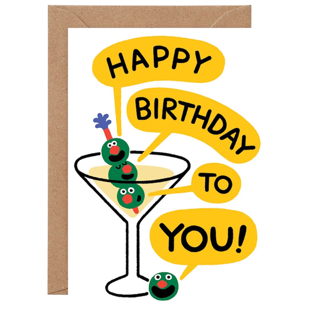 Happy Birthday Martini greetings card by Cari Vander Yacht for Wrap. 1 olive or 4? Raise a glass to their birthday with this joyful card by Brooklyn-based Cari Vander Yacht in her fun signature style. Blank inside with a white envelope.