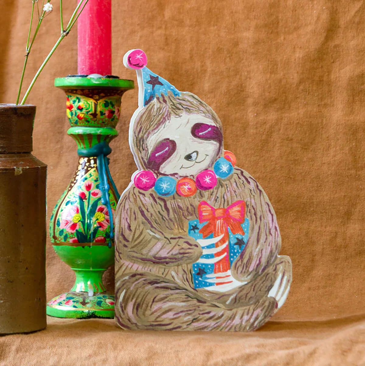 Party Sloth Die-Cut Birthday Greetings Card by Hutch Cassidy