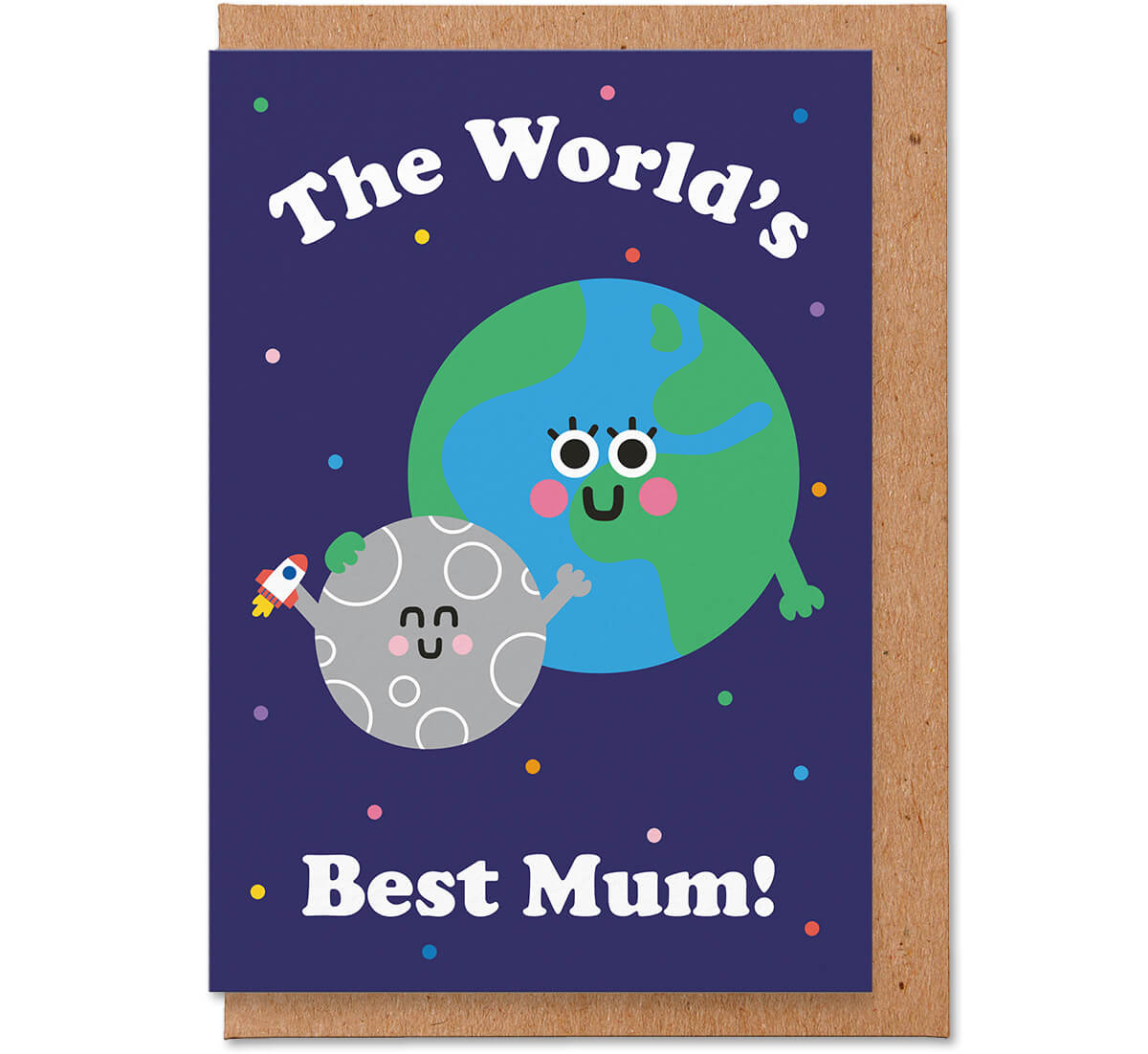World's Best Mum greetings card by Studio Boketto. A lovely Mother's Day card featuring space themed illustrations.