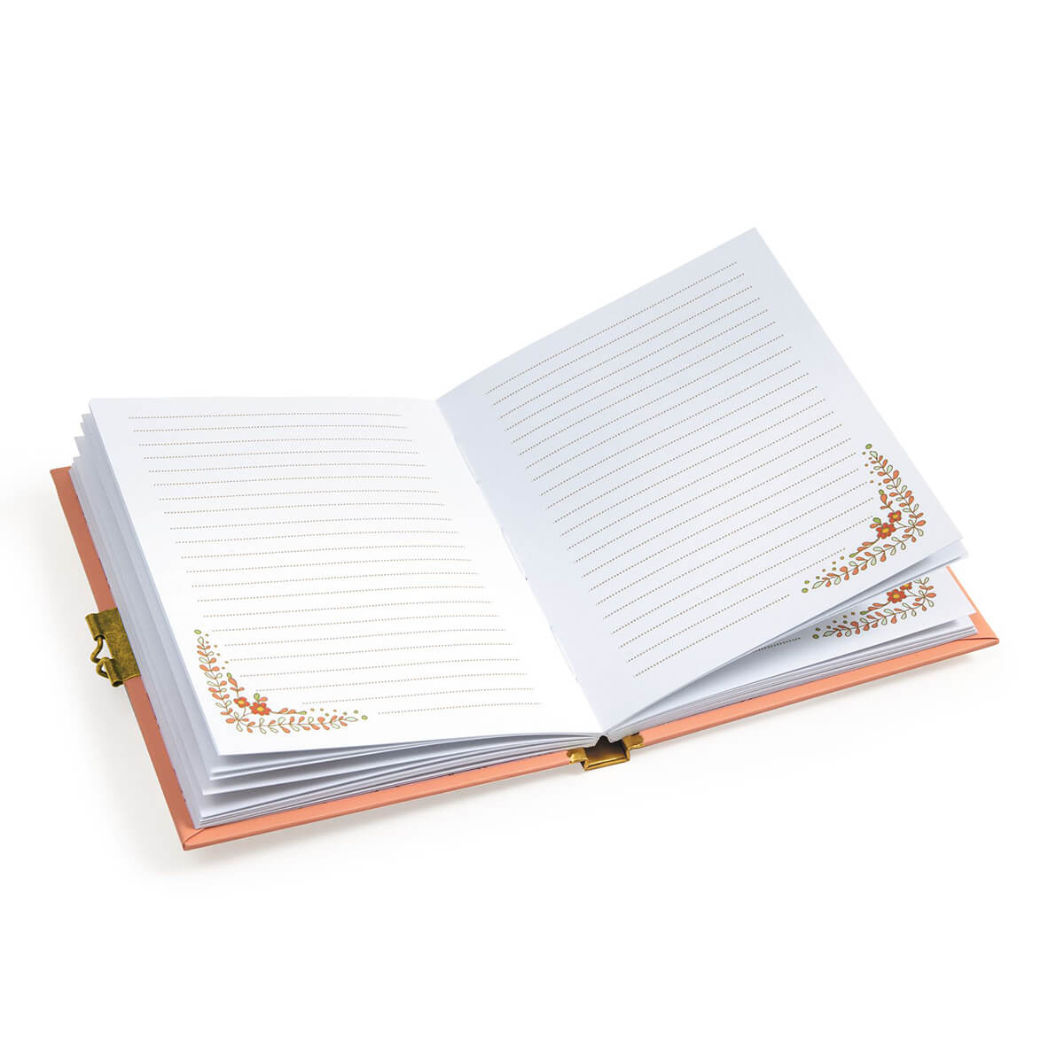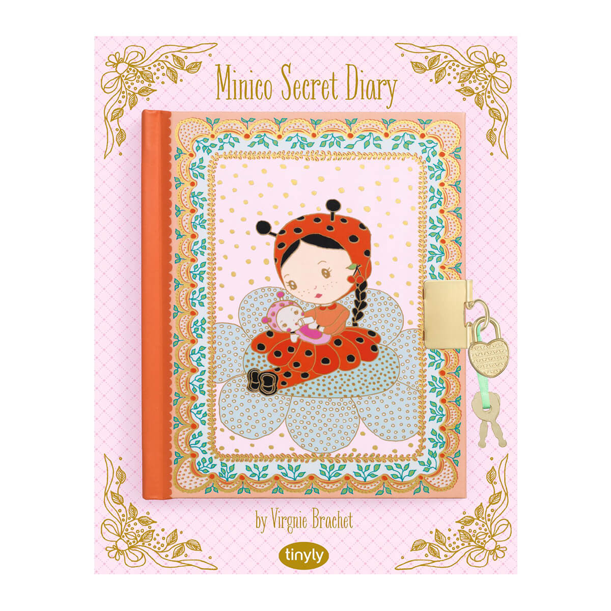 Tinyly Minico Secret Diary by Djeco. A wonderful secret diary with gold details, illustrated with the beautiful Tinyly Minico, for you to write and draw all your secrets. This diary contains 92 lined and illustrated pages. It can be locked with a heart-shaped lock, with 2 keys to keep your secrets safe from prying eyes.
