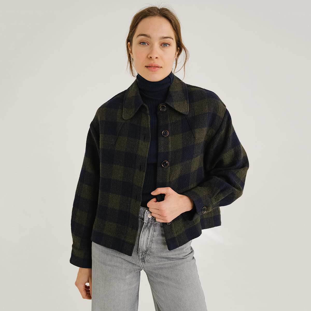 Balma Jacket by Sacrécoeur. A warm wool blend coat with a collar and front button closure.