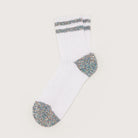 Bunt Crew Socks by Bellerose. Crew socks in white made from a rib-knit cotton blend with contrasting ankle stripes, toes, and heels in printed yarn.