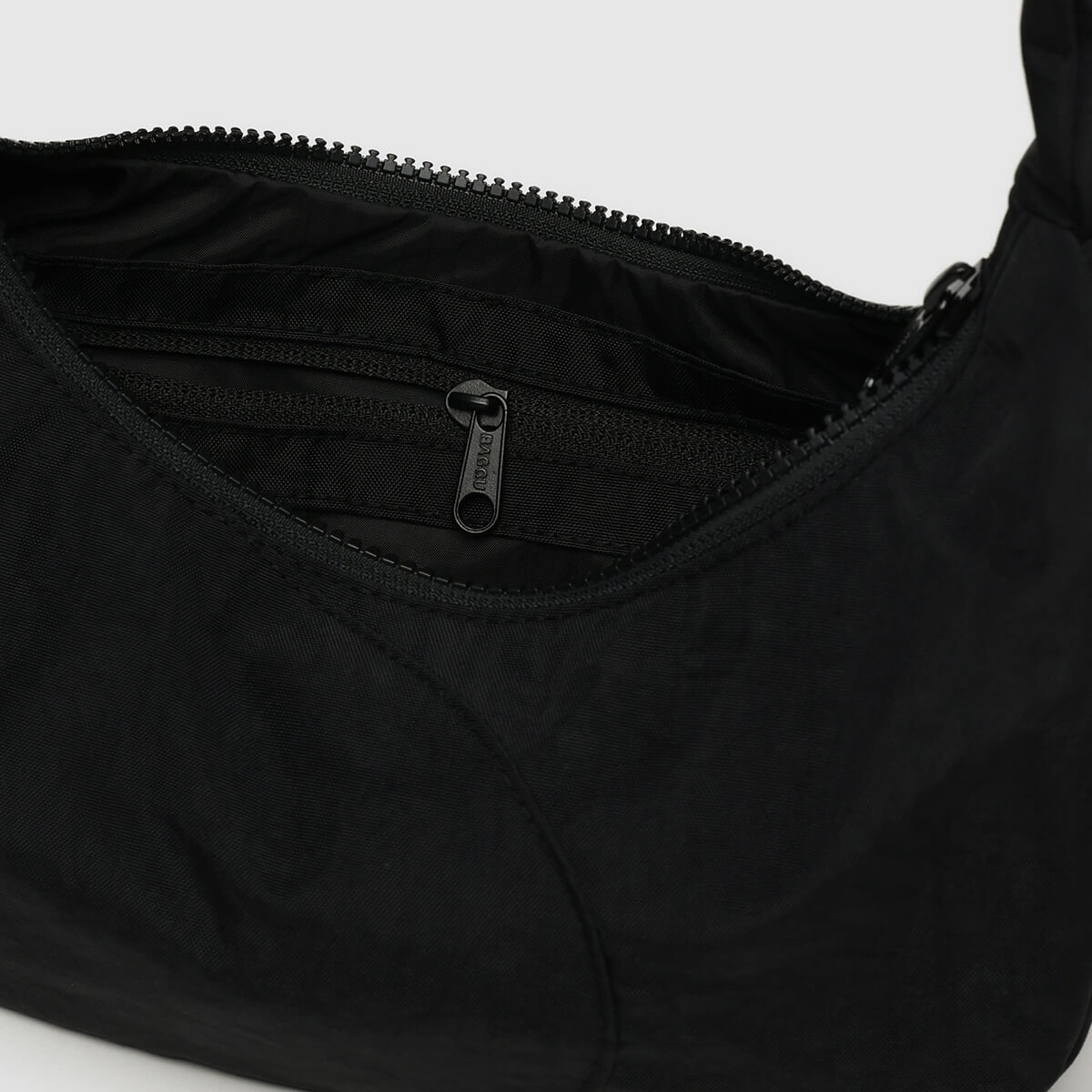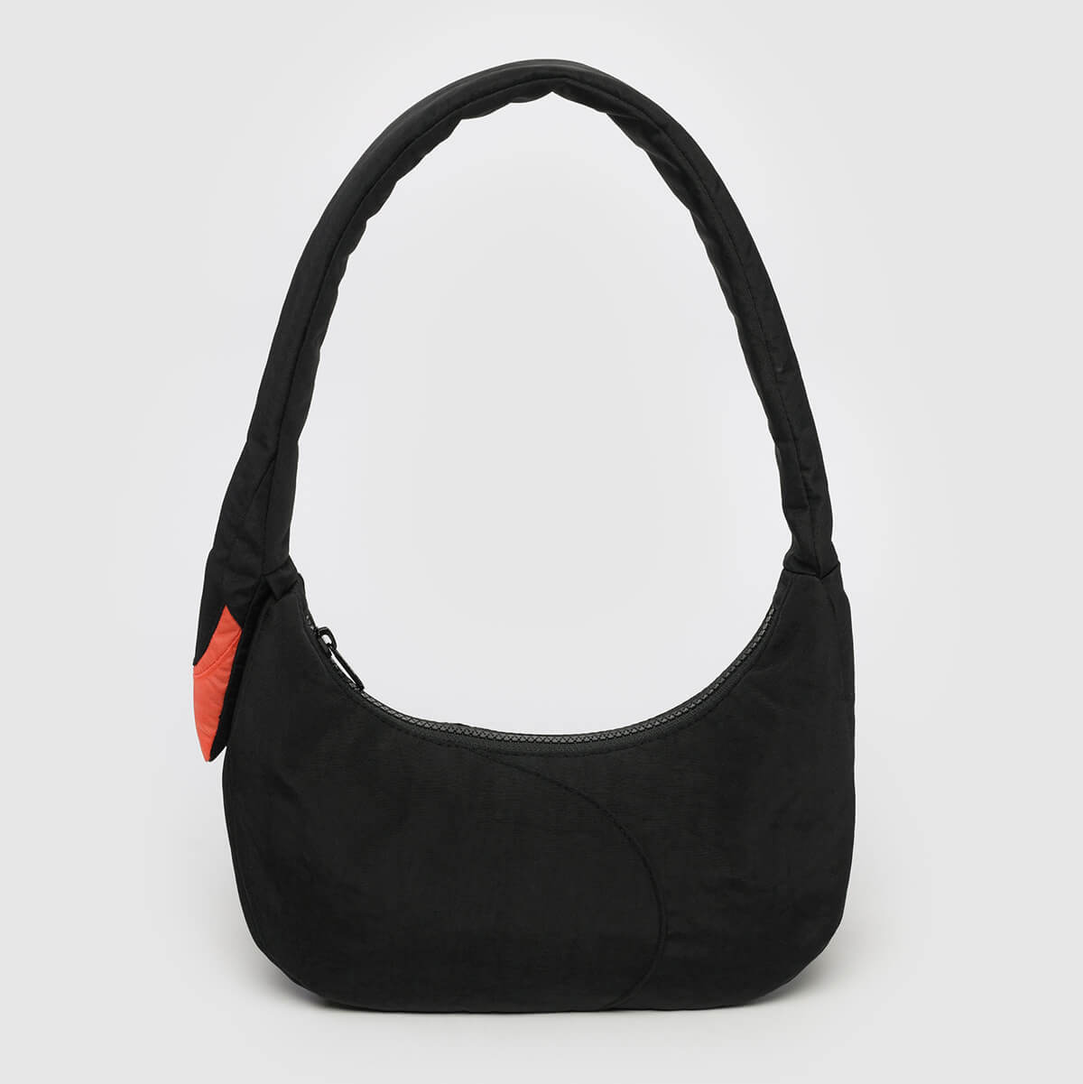 Swan Bag in black by Baggu. A fun and functional shoulder bag that fits all of your essentials. Features an interior zip pocket, and a padded strap with an 11 inch drop.