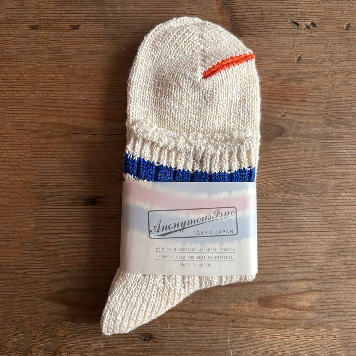 Anonymous Ism was founded in 2002 in Tokyo, Japan, making its first sock collections on 1970s traditional knitting machines which were slow and unreliable, but able to create intricate designs and textures of exceptional quality which was not possible in commercial manufacturing. The machines were rare, with spare parts very hard to find, so Anomymous Ism developed modern alternatives in sock production that could replicate the feel of the old looms and reproduce the traditional Japanese textile techniques without having to worry about machinery parts falling off. The brand continues to manufacture in Japan using sustainable techniques and thoughtful packaging. Its rider (the wrap around the socks) was developed with the Japanese government, it’s made from Limex (limestone) and will one day go back to being limestone. Anonymous Ism designs reference not only traditional sock-making but also diverse modern sources - marine, military and workwear, to name a few. Historical Japanese designs, incorporating art, traditional clothing and the ancient military disciplines also contribute to a huge variety of influences and inspirations. The brand has become synonymous with understated anonymous style and timeless design, and many of their designs have now become iconic, modern classics.