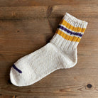 3 Line Slub Quarter Adult Socks by Anonymous Ism. Inspired by the clean lines of traditional sports and tennis socks, Anonymous Ism has added a twist of classic, handcrafted charm. Made on low-gauge machines with extra-thick slub yarn and a mix of yarn thicknesses, these socks achieve the ideal blend of color depth and softness.