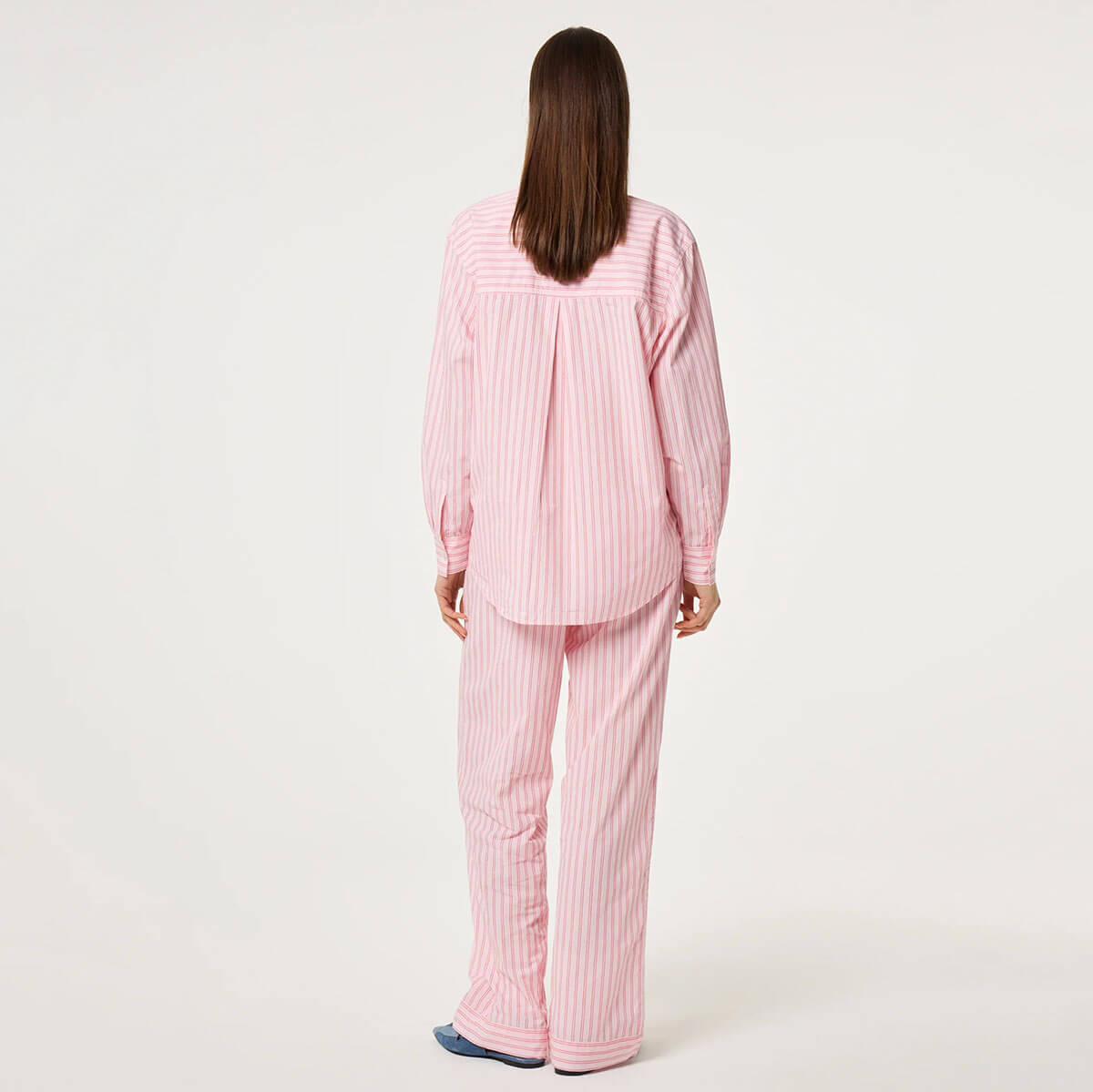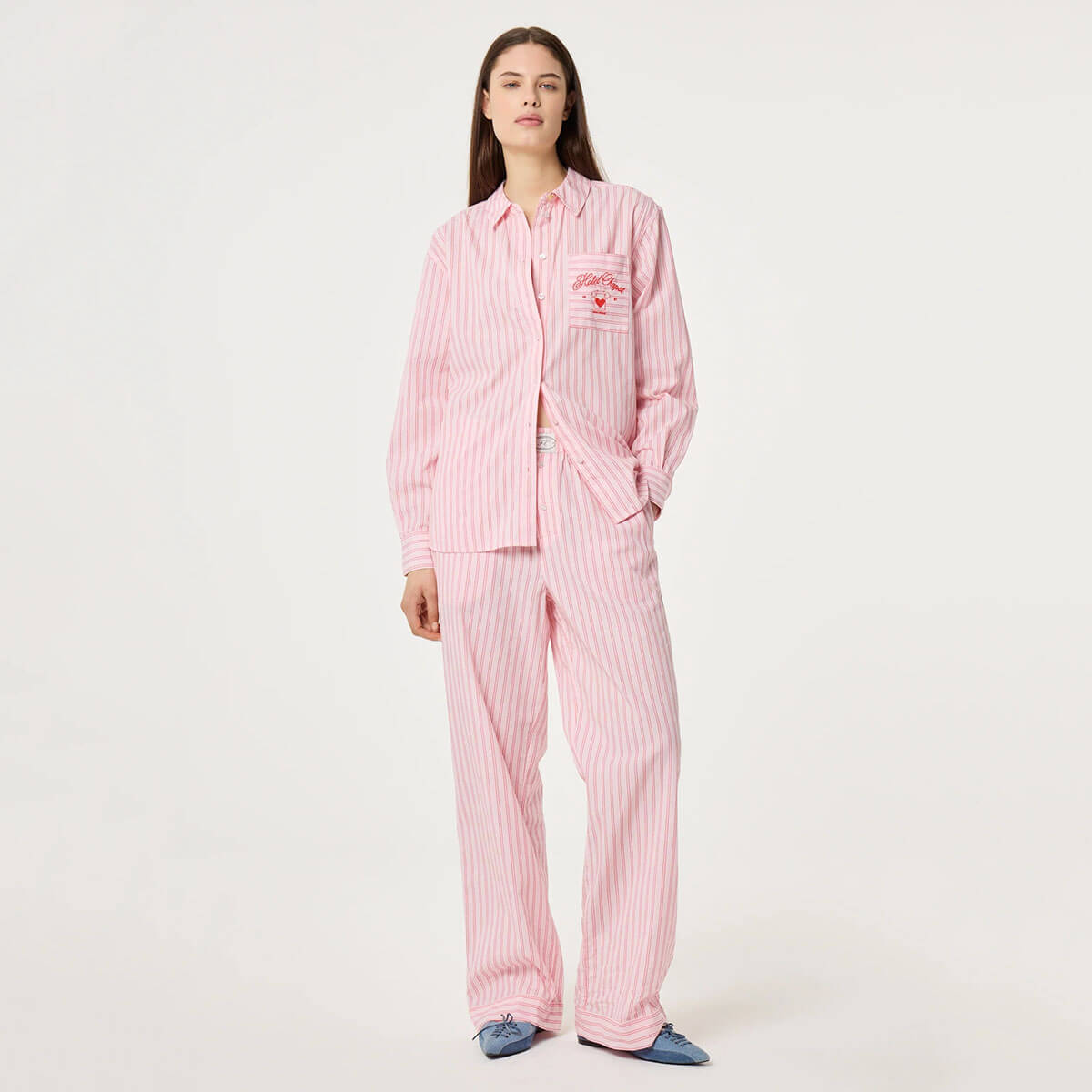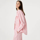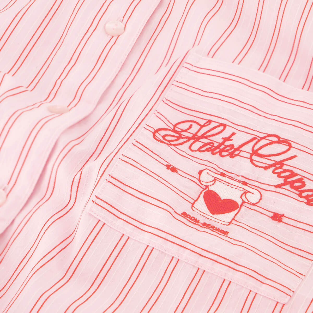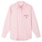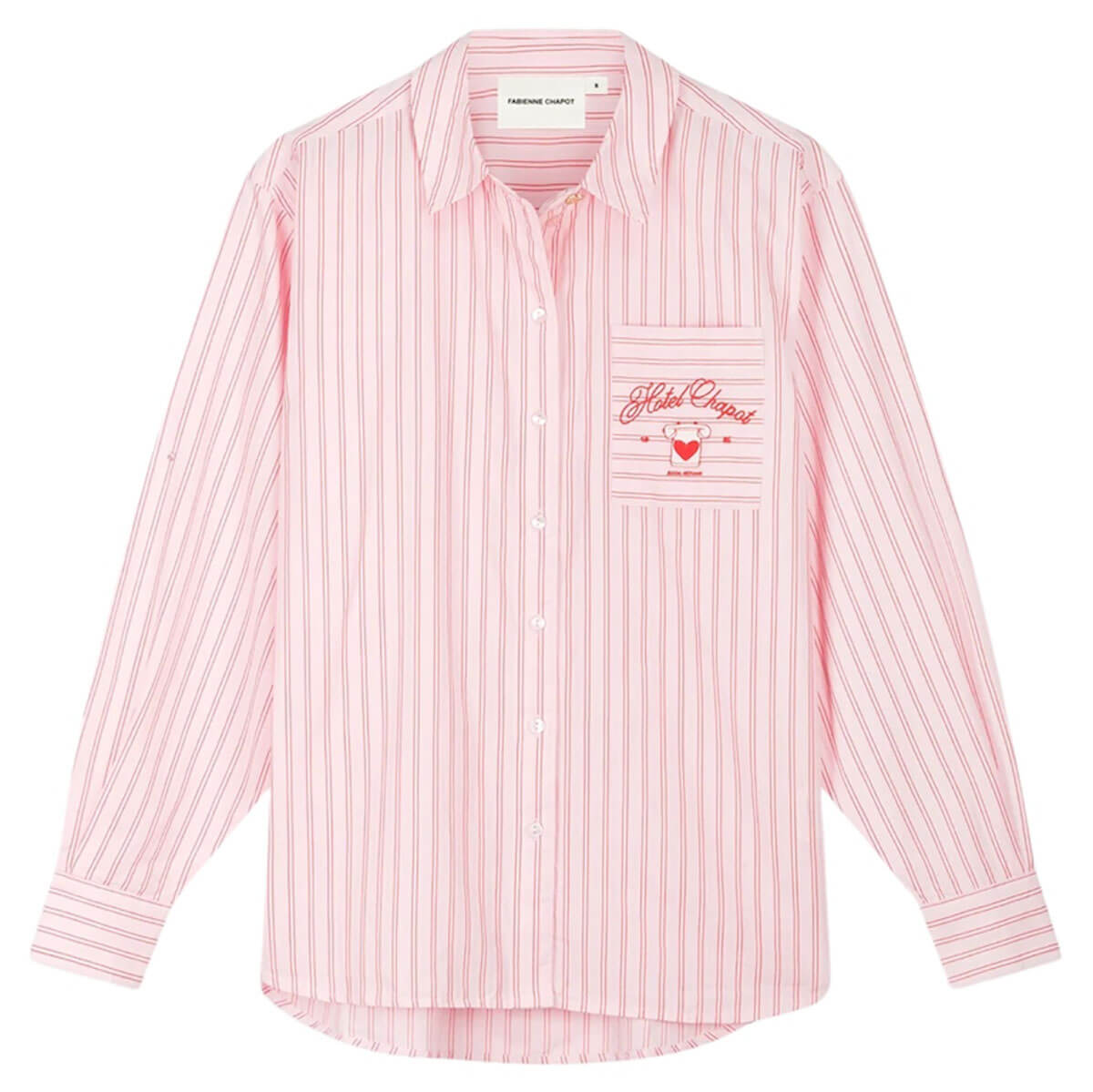 Alex Langoustine Blouse by Fabienne Chapot. This pink long-sleeve shirt features an all-over stripe design. Designed in a loose fit with a single pocket on the left side, featuring 'Hotel Chapot embroidery.