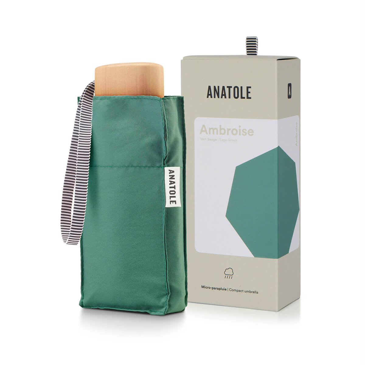 Ambroise Compact Umbrella by Anatole. This stylish green umbrella will be the envy of all your friends.