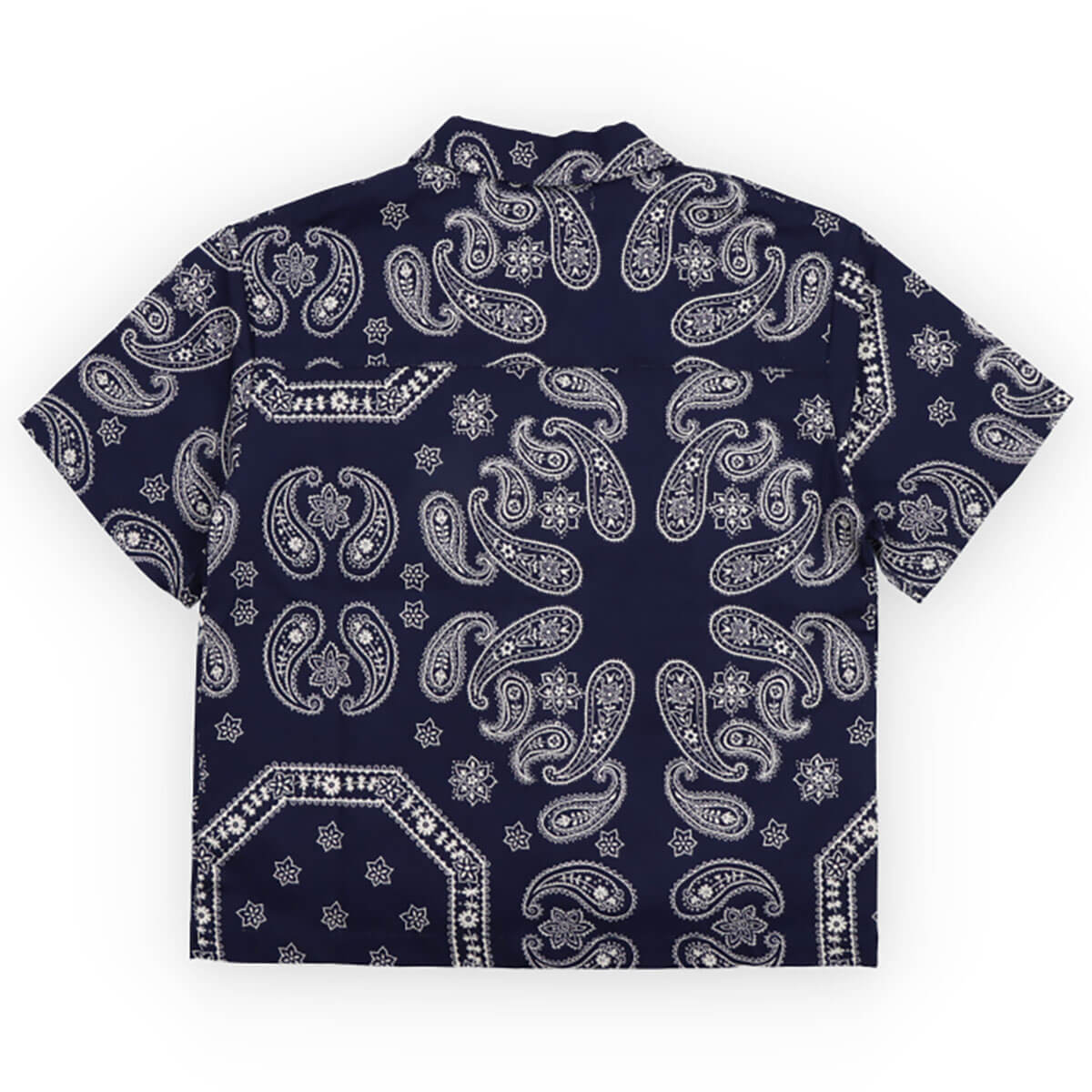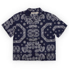 Aster Shirt by The New Society. Short-sleeve shirt in soft cotton with a two-tone bandana print. Features a front button-up closure and pairs perfectly with the matching bermuda shorts for a complete look.