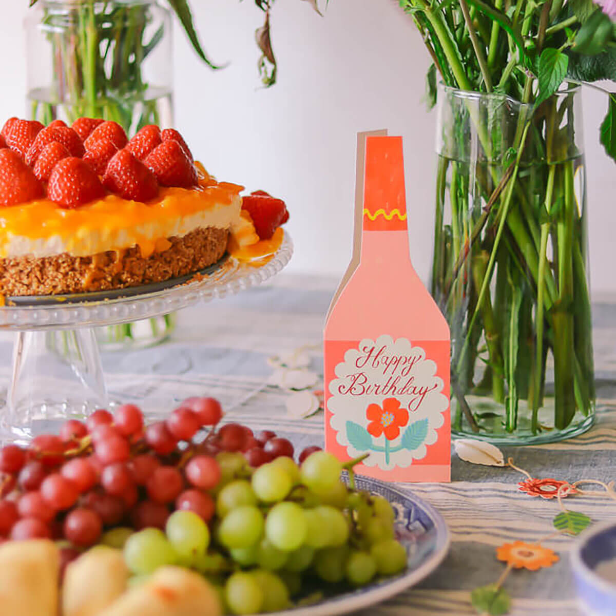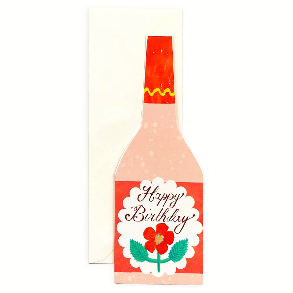Birthday Rose Wine Bottle Greetings Card by Hadley. A birthday rose wine bottle-shaped card is perfect to give to that person who loves a glass of fizz on their birthday.