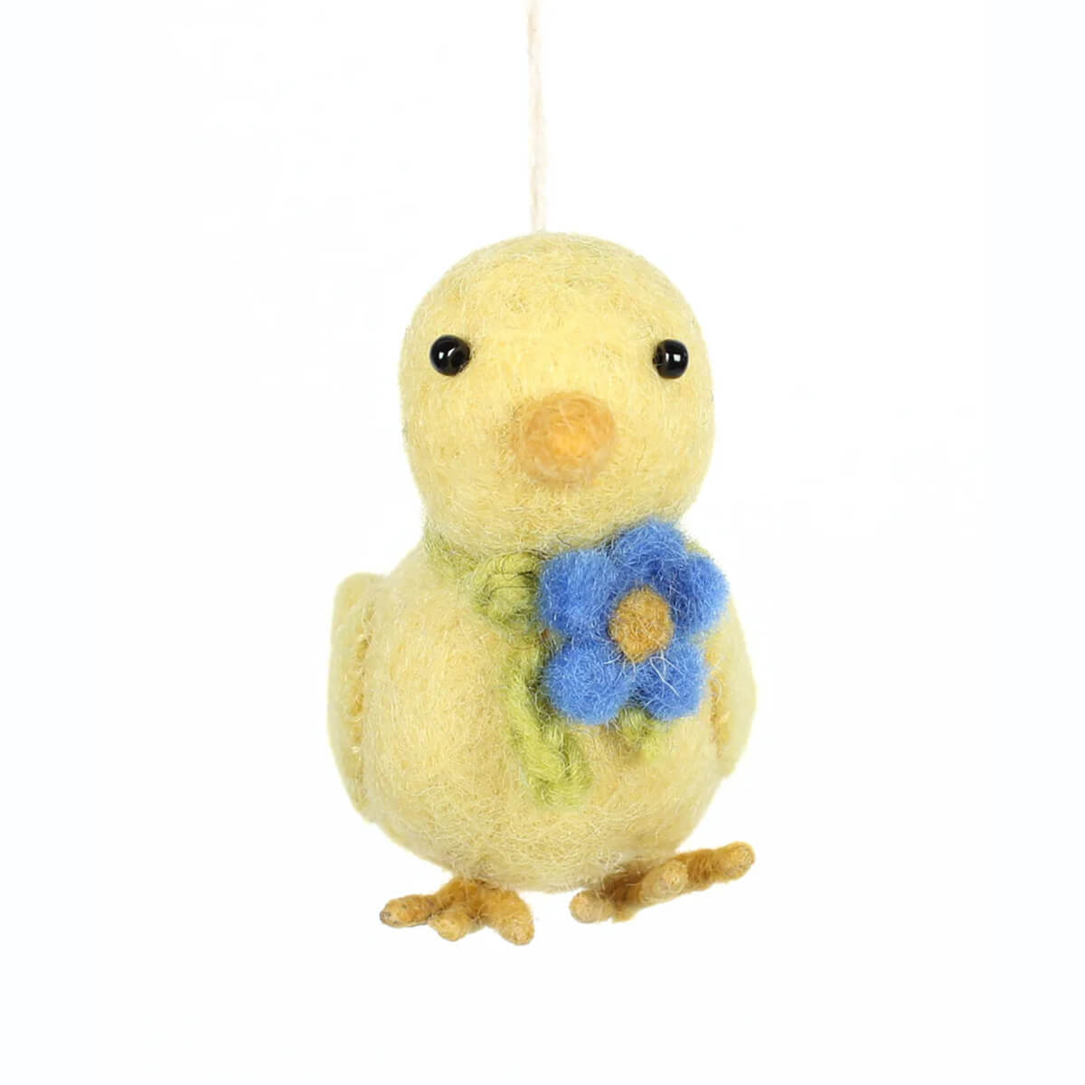Chick With Flower Hanging Decoration by Amica. Fresh out of the egg this little chick is perfectly represents Spring. This lovely hand-felted decoration is perfect for hanging on your Easter tree, as part of an Easter Egg hunt or for decorating the home in Spring. Complete with a hanging loop.