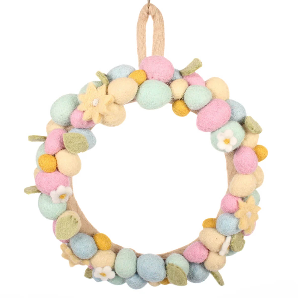 Easter Egg & Flower Wreath Hanging Decoration by Amica. A pastel coloured wreath full of eggs and flowers - perfect for any front door or wall.