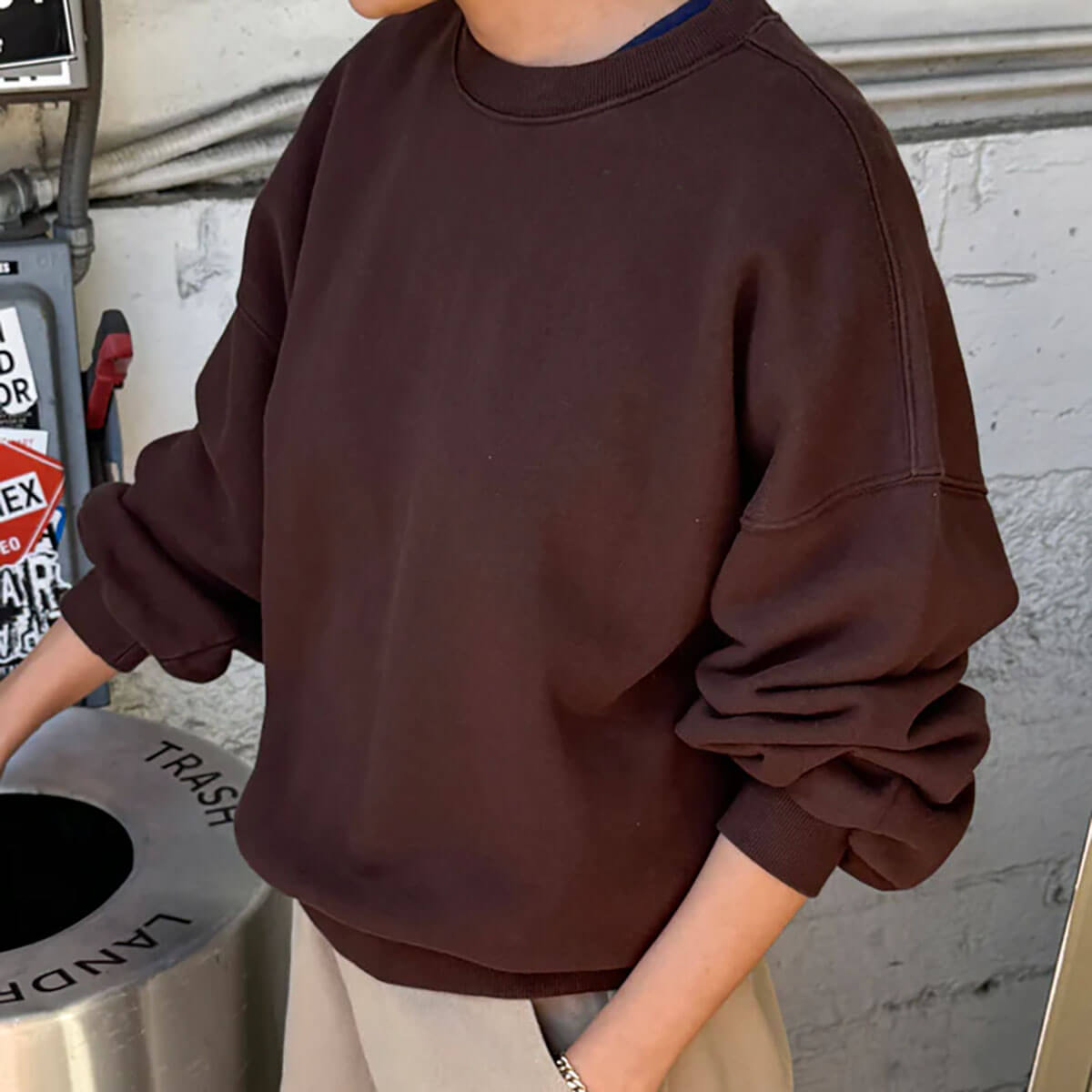 French Terry Core Sweatshirt by Le Bon Shoppe. The sweatshirt you’ll reach for again and again. With a smooth outer finish and soft French terry interior, it feels like your favourite vintage crew—easy, cozy, and perfectly broken in. Its relaxed, boxy fit makes layering effortless no matter how you style it.