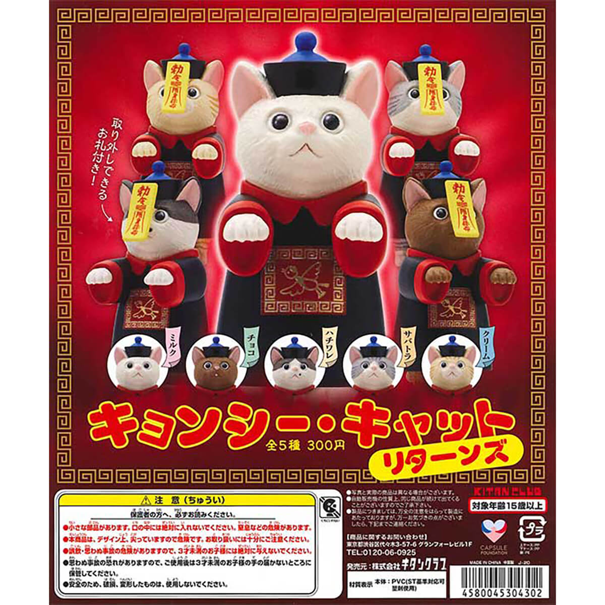 Jiangshi Cat Returns Gachapon Capsule Collectible by Kitan Club. Highly collectible and authentic Japanese gachapon capsule featuring cats dressed as hopping vampires from Chinese folklore. Each cat has a removable talisman on its forehead.