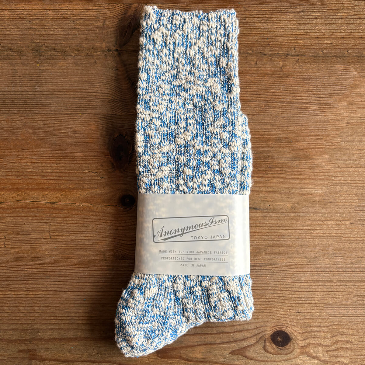 Anonymous Ism was founded in 2002 in Tokyo, Japan, making its first sock collections on 1970s traditional knitting machines which were slow and unreliable, but able to create intricate designs and textures of exceptional quality which was not possible in commercial manufacturing. The machines were rare, with spare parts very hard to find, so Anomymous Ism developed modern alternatives in sock production that could replicate the feel of the old looms and reproduce the traditional Japanese textile techniques without having to worry about machinery parts falling off. The brand continues to manufacture in Japan using sustainable techniques and thoughtful packaging. Its rider (the wrap around the socks) was developed with the Japanese government, it’s made from Limex (limestone) and will one day go back to being limestone. Anonymous Ism designs reference not only traditional sock-making but also diverse modern sources - marine, military and workwear, to name a few. Historical Japanese designs, incorporating art, traditional clothing and the ancient military disciplines also contribute to a huge variety of influences and inspirations. The brand has become synonymous with understated anonymous style and timeless design, and many of their designs have now become iconic, modern classics.