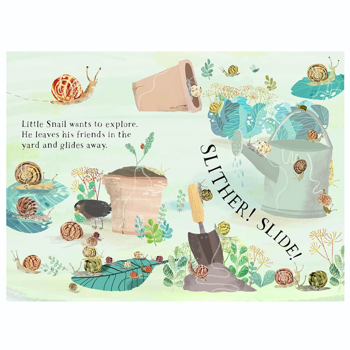 Little Snails Book Of Bugs by Yuval Zommer. Follow a baby snail on a slow and slimy trail around the garden to discover a world of insects. Packed with Yuval Zommer's gorgeous illustrations, fun onomatopoeiac words to read out loud, and lots of bugs to spot, this chunky board book is the perfect for any child with a fascination for creepy crawlies. Ten species of garden bugs are spotlighted on Little Snail's journey around the garden, from busy bees to chirping crickets, finishing with a peaceful nighttime scene, perfect for bedtime reading. This reimagining of the best-selling The Big Book of Bugs is designed to instil an early love and curiosity for the natural world and its wonderful wildlife.