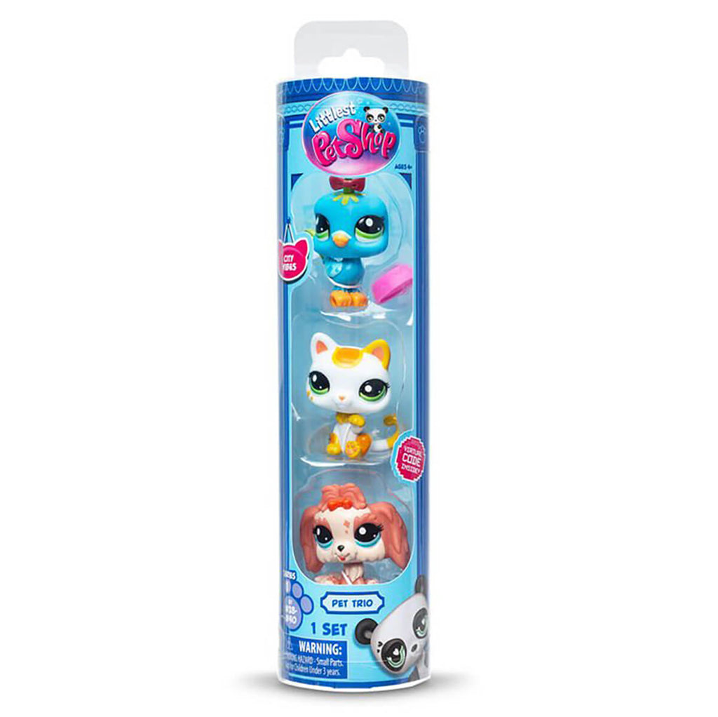 Littlest Pet Shop Pet Trio Collectors Tube by Basic Fun. Set of 3 cute Littlest Pet Shop animals. Each Littlest Pet Shop pet is a cute, 5cm tall animal with a wobbling bobblehead, learn about their breed, personality, and rarity with the collector's card! With 3 different tube themes, how big will your Littlest Pet Shop crew be?