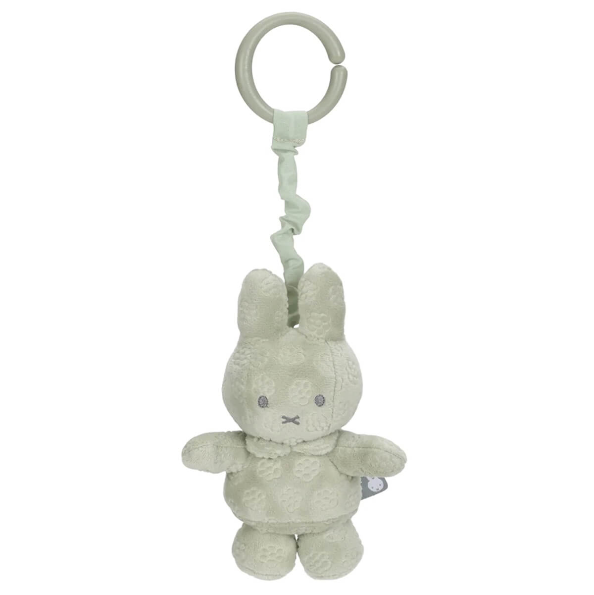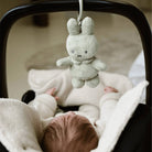 Miffy Hanging Toy in Green Flower by Little Dutch. This on the go toy can be attached to a pram, car seat or activity bar. Pull Miffy down and she vibrates back up.